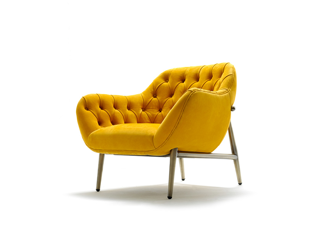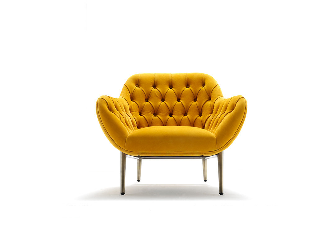 Armchair with inner structure made of wood , covered by a beautiful capitonné finish , hand made with the exclusive leathers selected by Ulivi , or with the fabrics of the new collection 2018 . The elegant external frame , made of steel or solid wood , is available in different finishings.