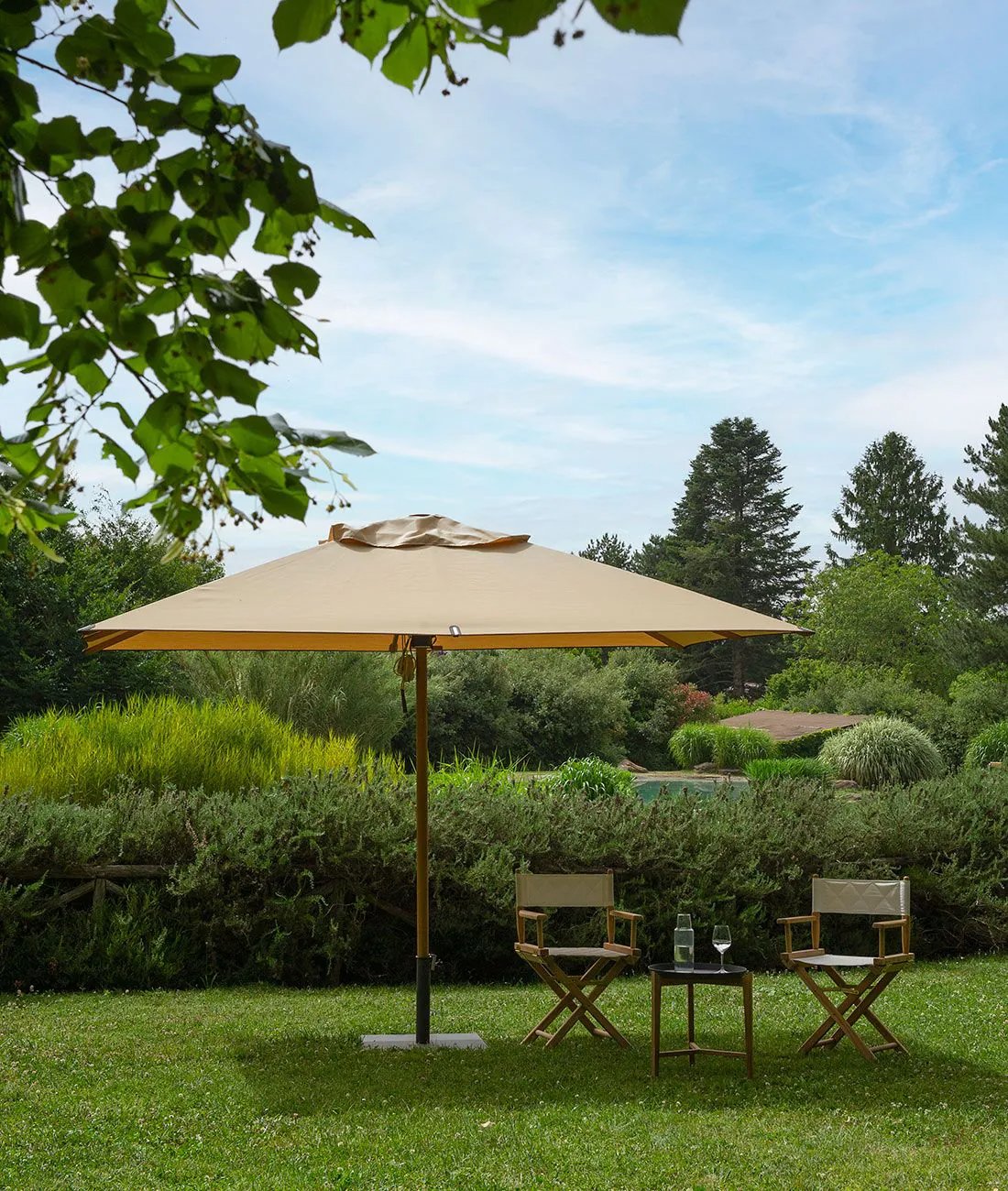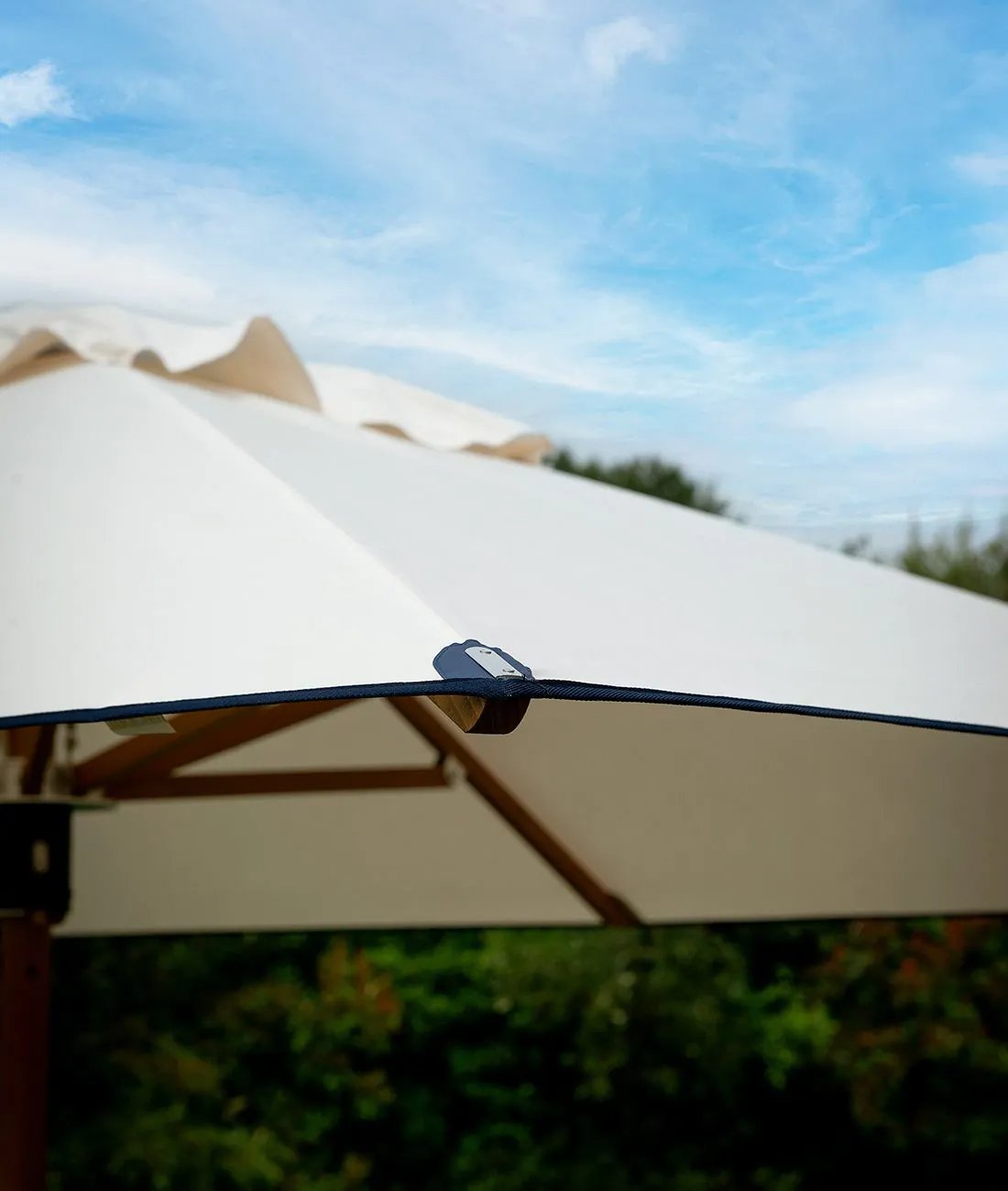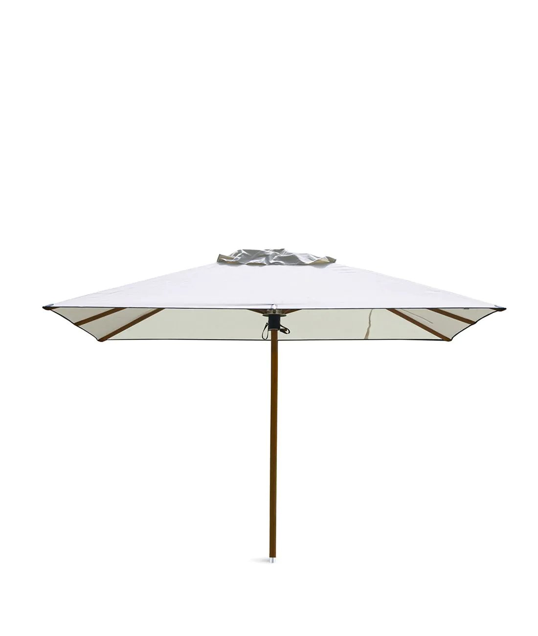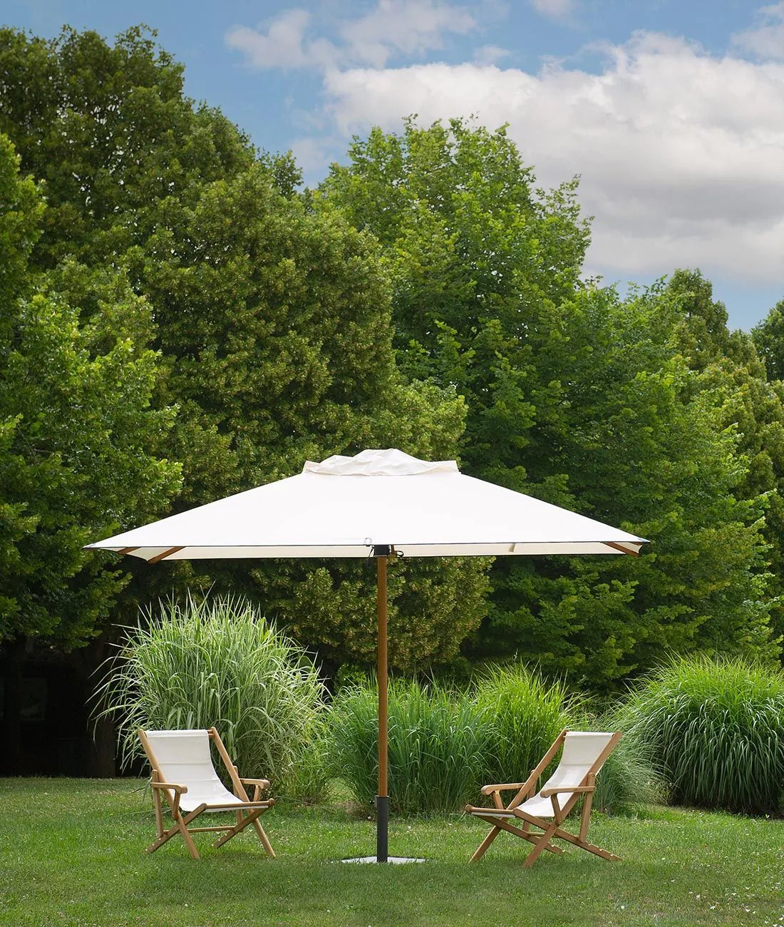 L'ombrellone rettangolare da giardino della collezione Damian è disponibile in eleganti varianti di colore: bianco con pipeline blu e colore corda con pipeline écru. Questo ombrellone da esterno presenta dimensioni generose di 250 cm x 350 cm e un'altezza di 277 cm, ideale per offrire ampio spazio d'ombra nelle giornate soleggiate. La struttura è realizzata artigianalmente in legno di frassino, garantendo resistenza e durabilità nel tempo.