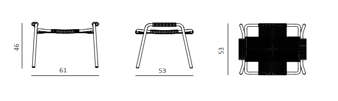 La struttura in alluminio è proposta nelle colorazioni grafite e syrah ed è rifinita da una corda disponibile nelle variante di colore ecrù o fondente.