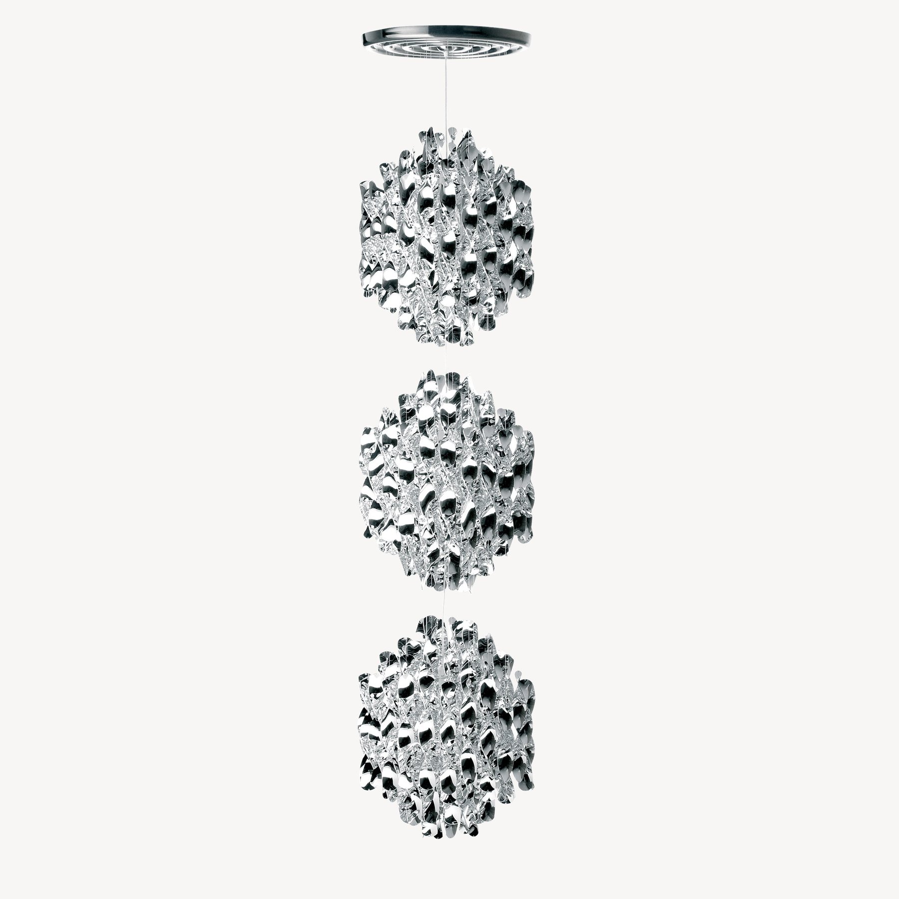 Spiral SP3 Silver is a XL hanging ceiling lamp with three clusters of silver spirals.