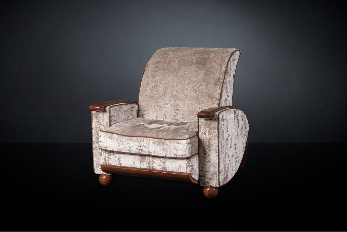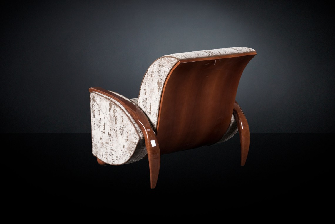 Classic armchair handcrafted by Venetian artisans, restyled by Slow+Fashion+Design for VG inspiring to antique Fortuny fabrics and Japanese shibori art. The choice of alternated textured inserts was inspired by the Yin & Yang philosophy, so that the two armchairs would complement one another.