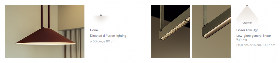 Plusminus is a versatile lighting system that takes the concept of the light rail to a new level. The conductive textile ribbon at its core allows for free placement of the luminaires and the creation of unique light solutions on the spot.