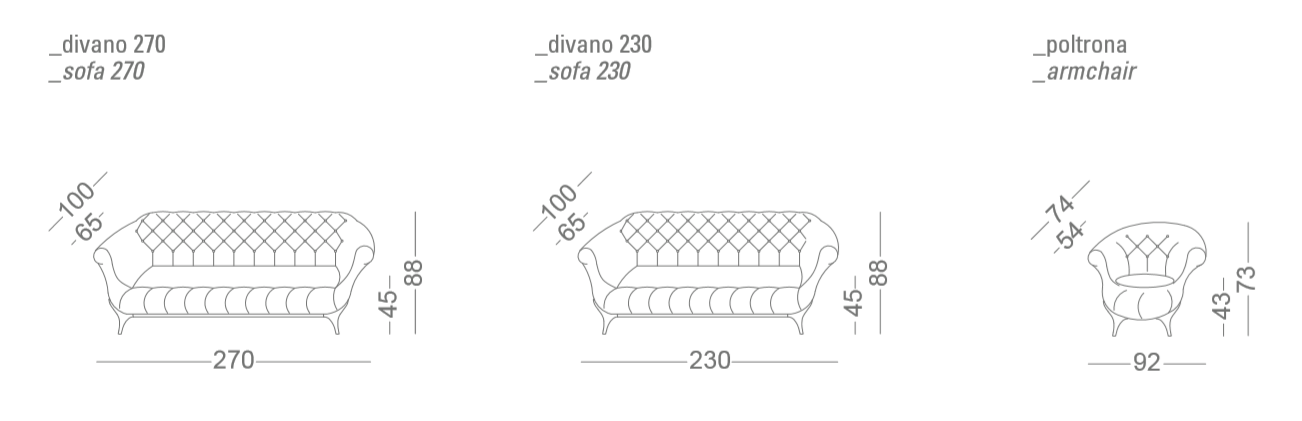 The 440 Victor armchair has been designed to be paired with the 440 Victor sofa and to suit every other furnishing accessories having classical elegance.