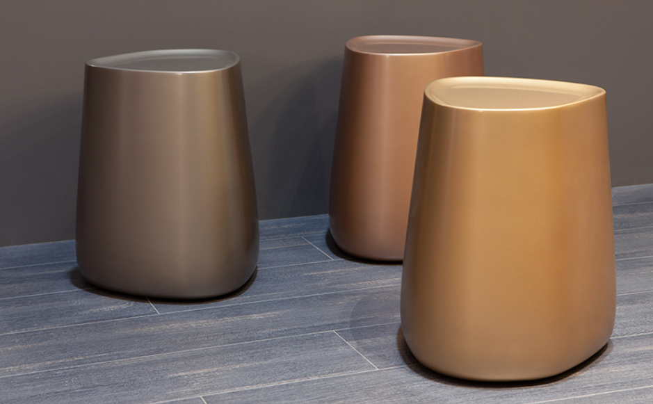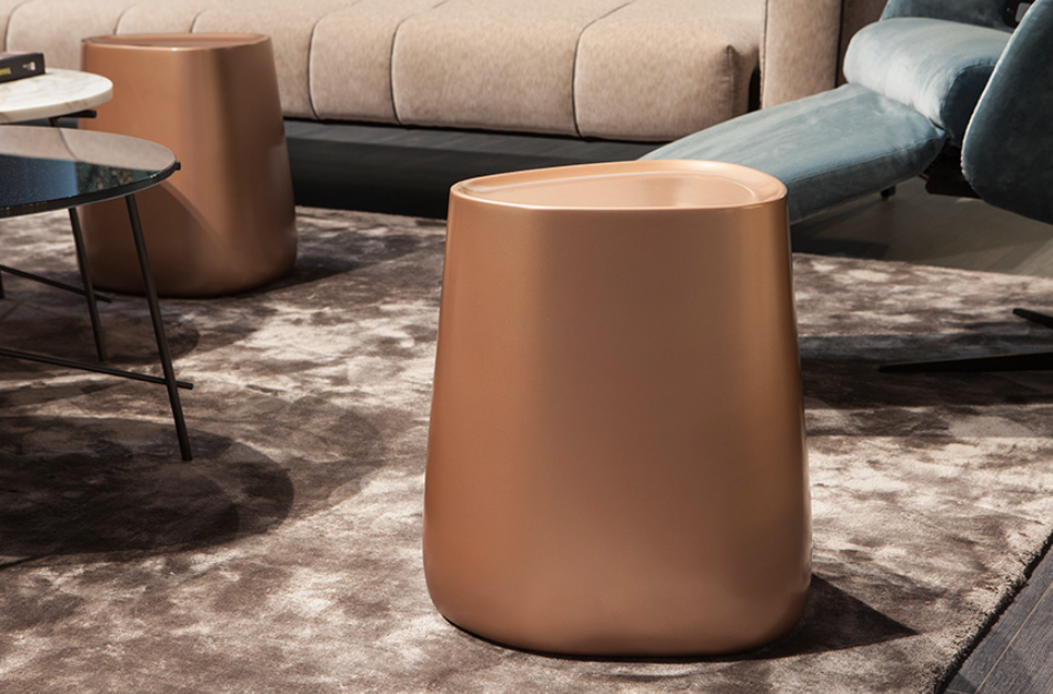Pico is light and strong, discreet and functional. Its curvy, harmonious and smooth shapes make it an elegant and functional furnishing accessory.Pico’s structure is cold-cured with high density foams. It comes in three different finishes: gold, silver, bronze and black.It can be easily moved around the room thanks to a leather handle.