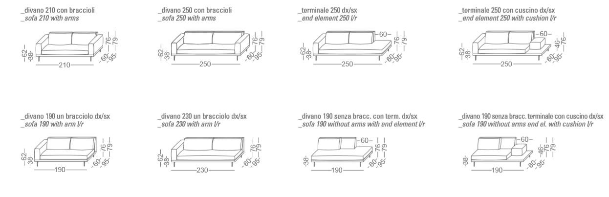 750 Link is an extremely customizable sofa; it can be combined into numerous variants by choosing single elements with different sizes along with corner and end elements, islands, chaise-longues and ottomans that can be freely joined together