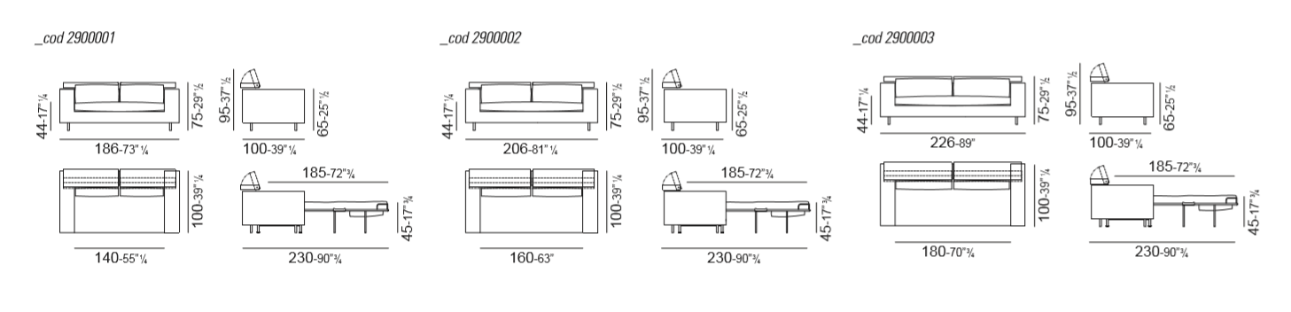 The 2900 Open sofa bed can be covered with an endless range of fabrics in the trendiest colours. Covers are available in the most requested materials: leather, cotton, linen, all of which are top quality handcrafted, sartorial products. All covers are removable and washable. The sofa and headrest padding is made of polyurethane foam wrapped by thermal bonded fibre. The headrest panel is made of plywood covered by polyurethane foam wrapped with a thermal bonded fibre.