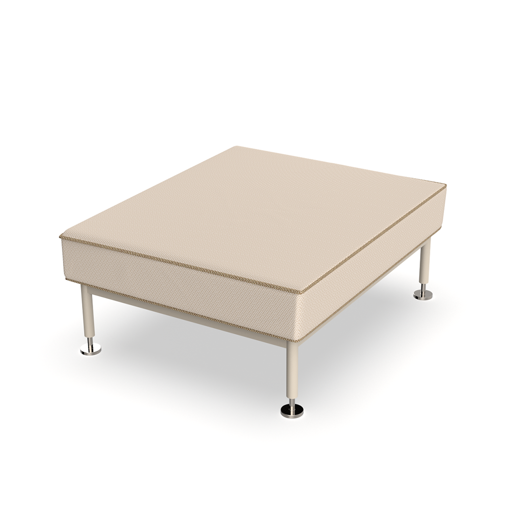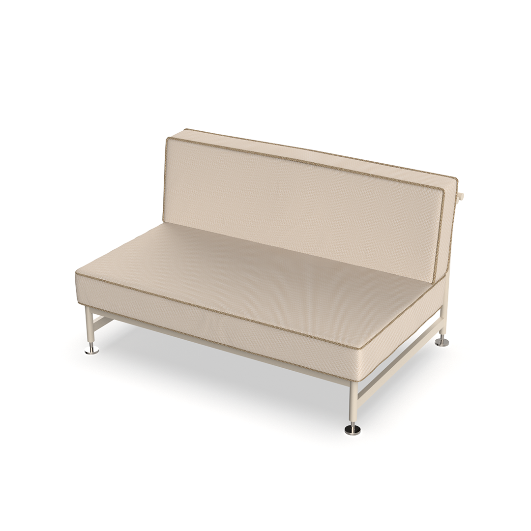 Ramón Esteve has designed an elegant modular sofa with a solid aluminium structure, teak details and polished aluminium legs. Its upholstery, devised for outdoor use, combines weather resistance with the comfort of an indoor fabric.
