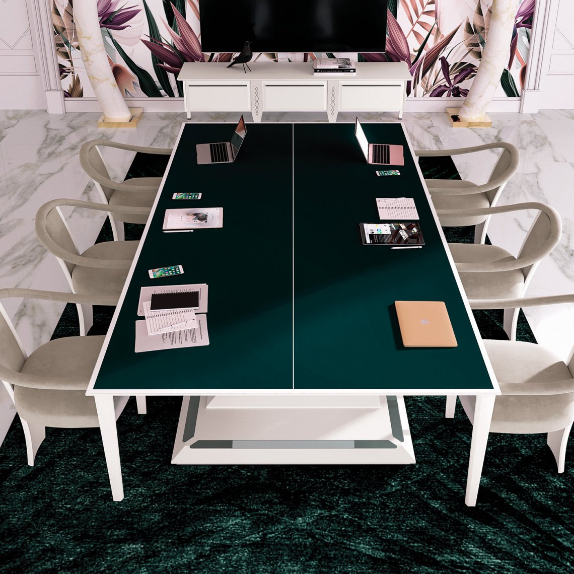 An innovative and versatile product, with a strong personality, characterized by an eccentric look and a manic attention to details.a€? The playing surface presents the traditional table tennis layout, extra matt lacquered green, with lacquered glossy white wooden V-shaped base and chrome steel details. Removable net complete of steel tensioners, that once removed it could become conference or dining table.