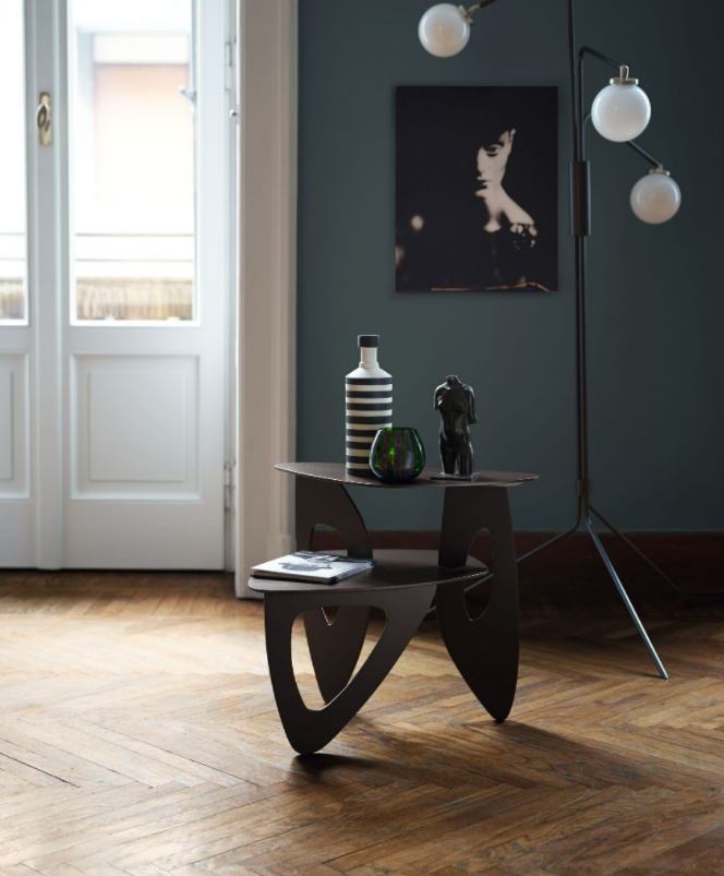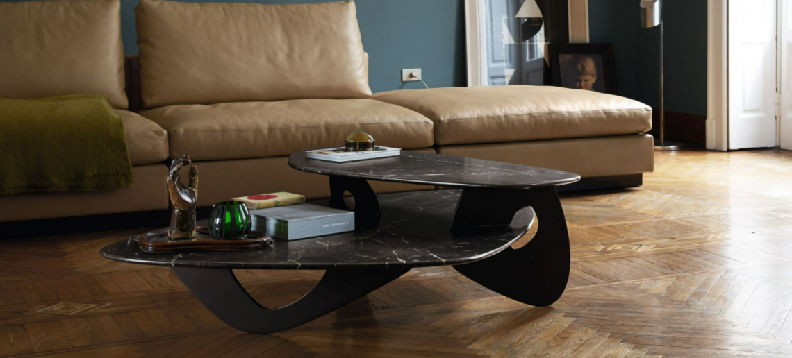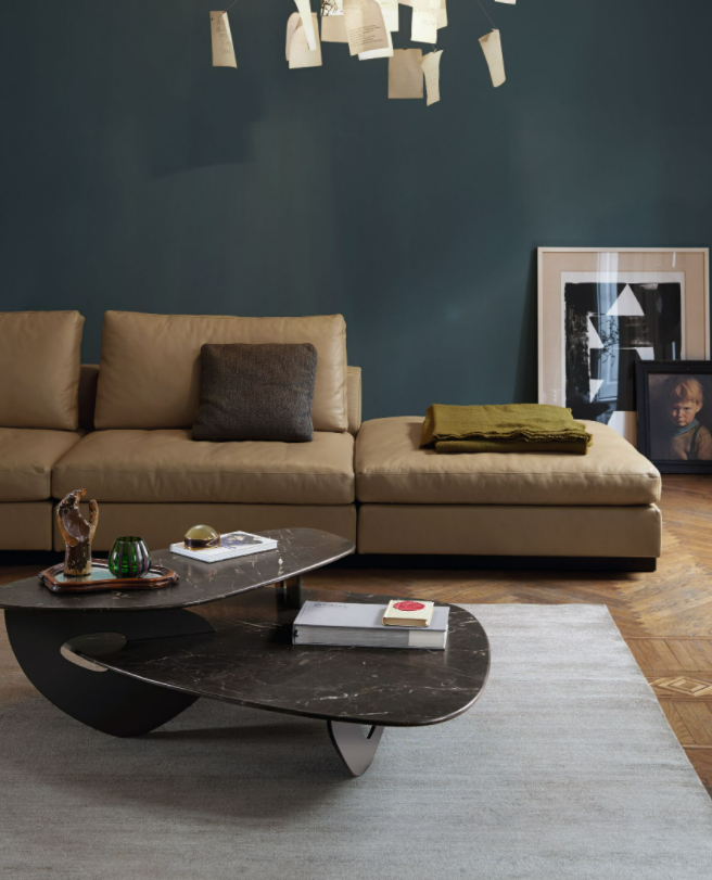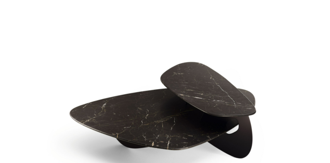 The fine art of sculptural design: this exceptional occasional table creates an elegant and refined effect thanks to its impressive flowing lines. Horizontal and vertical expanses intermingle. Table tops of finest marble define the room.