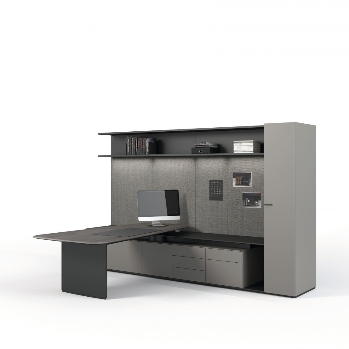 Management-X combines two disciplines: workstation and wall. The modular system offers a wide range of individual configurations for working, meeting, storage and IT integration.