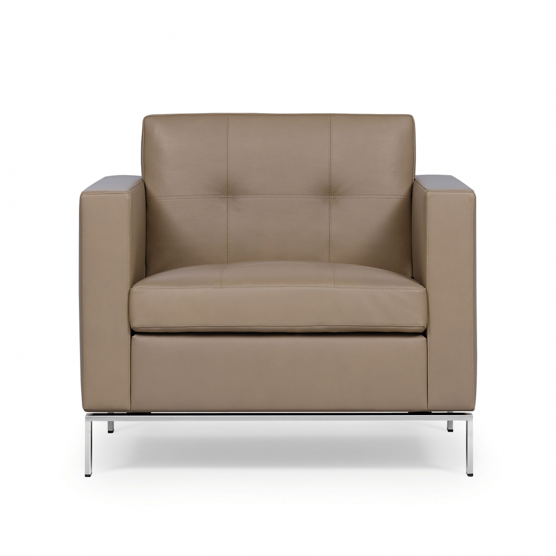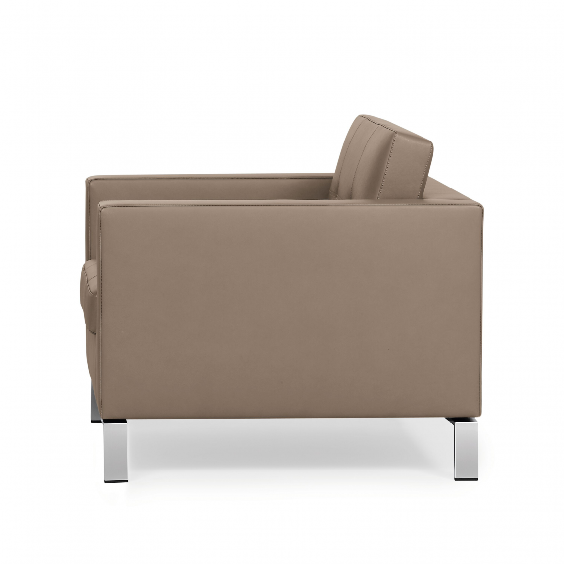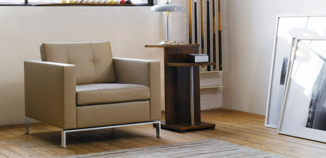 Elegant proportions, the finest leather, and excellent craftsmanship: the intricately worked visible seams reveal the quality of the design. The armchair and sofa were designed for prestigious offices and lobbies. Designed to accompany them is the Foster 500 Side Table.