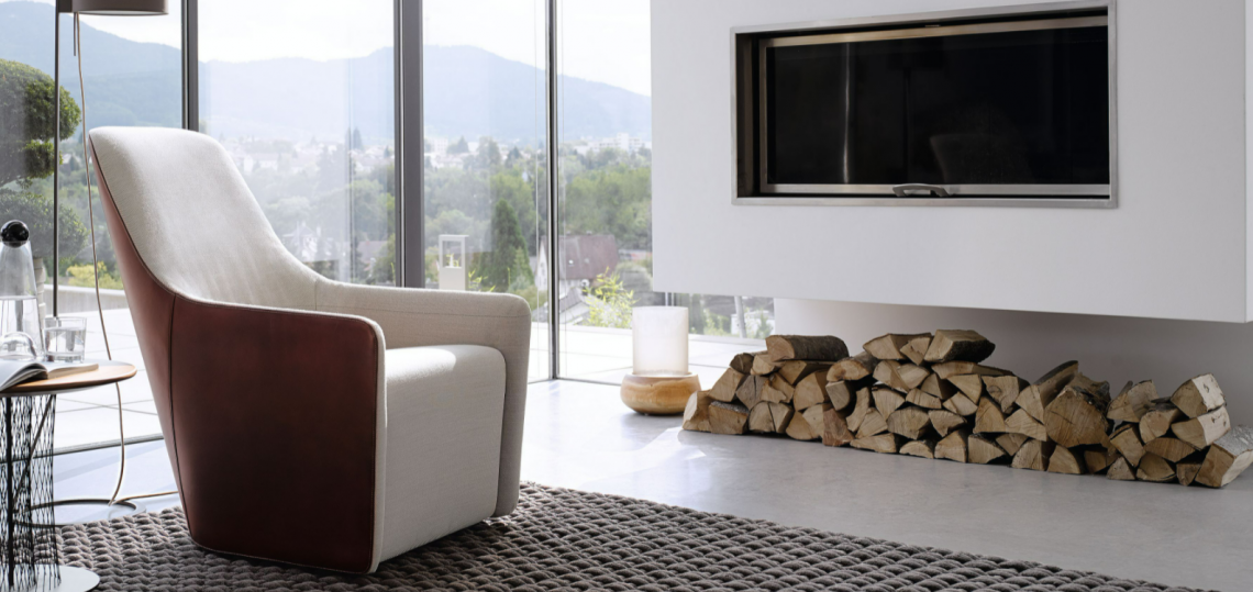 An effortless combination of materials: saddle leather with distinctive markings on the back, natural materials in the seat. The intricately worked stitching emphasizes the sweeping lines. It swivels easily or rests on feet – for longer periods of sitting during conferences or at a table. The separate stool completes the standalone chair.