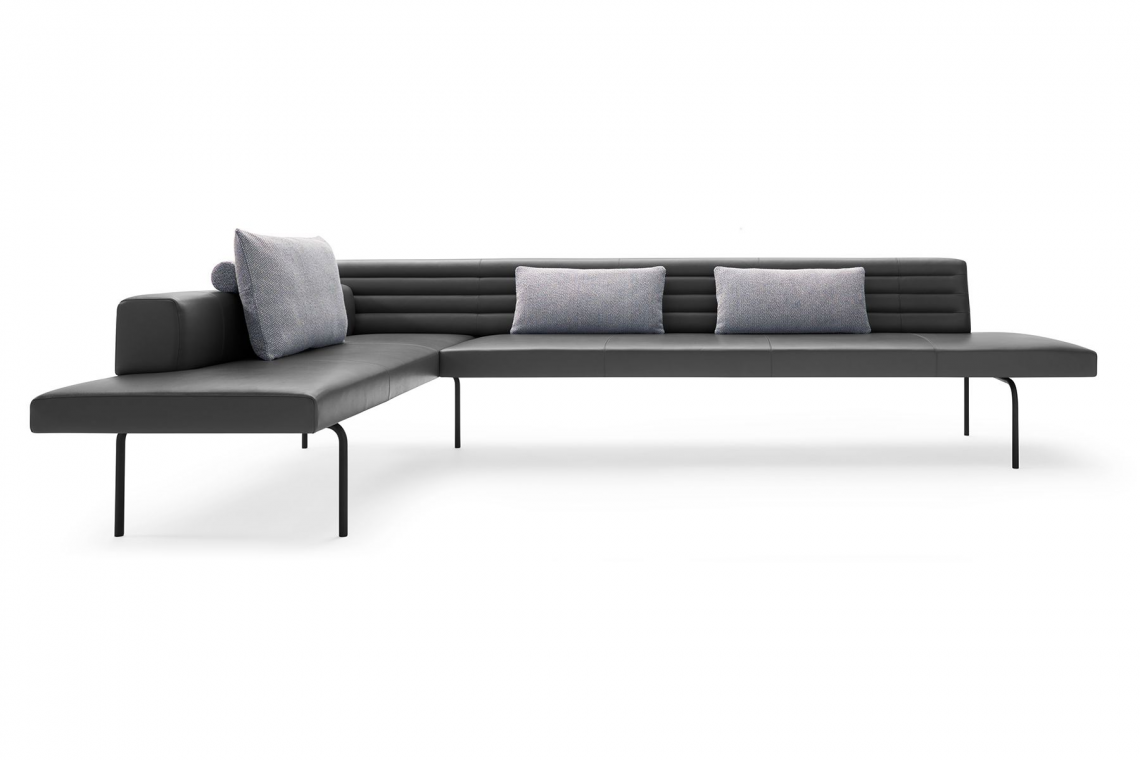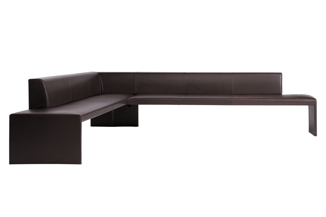A new interpretation of the classic corner bench – Ison. Light, minimal, complex. The upholstered bench embraces the principle of modernity: less is more. It can be freestanding and radiates lightness. As a corner bench, sofa bench, bench for dining – for working and living.