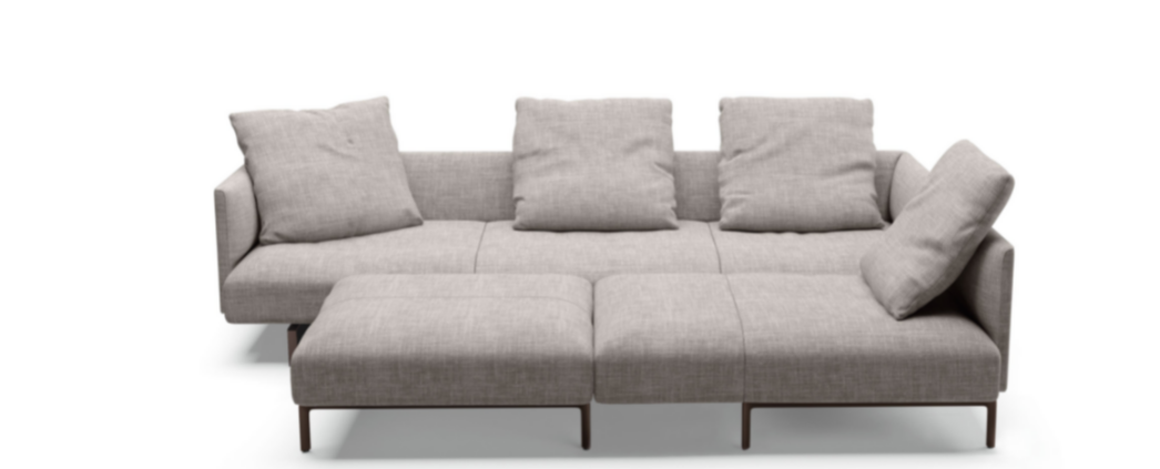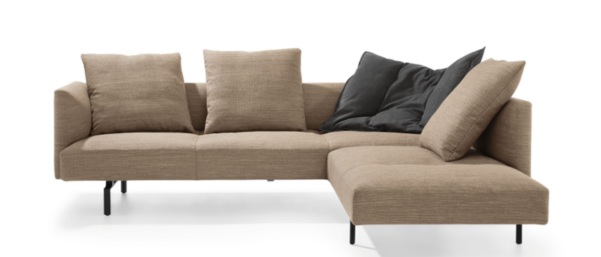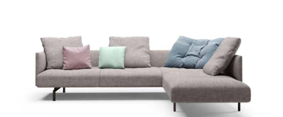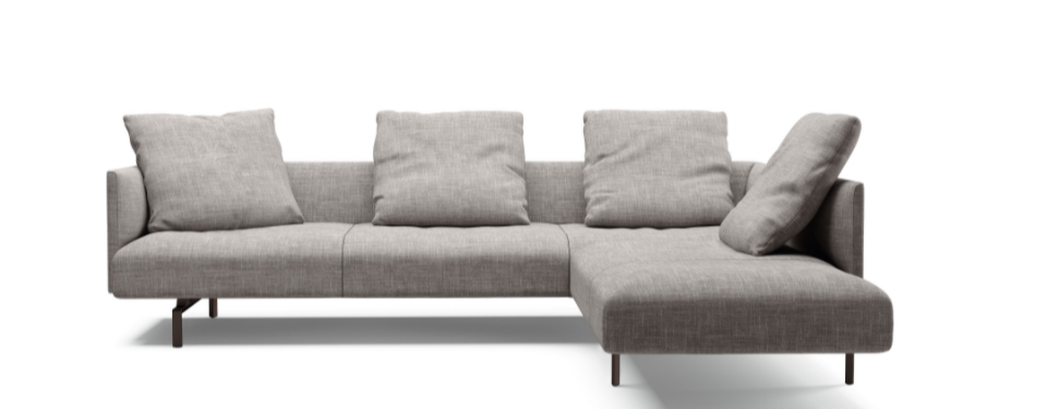 An oasis of well-being for urban and smaller spaces, with soft upholstery, soft cushions, and an airy look. The recamière can be easily swiveled across the floor. The new down-filled Dream Cushion allows the sofa corner to be soft and supportive at the same time.