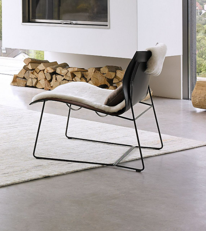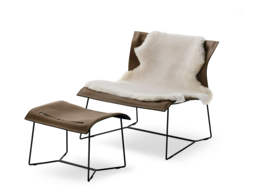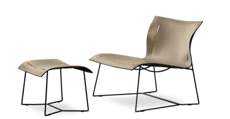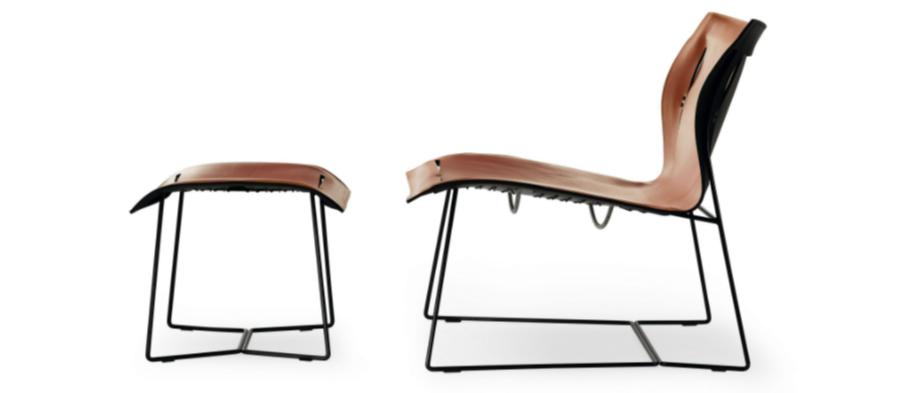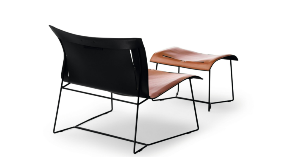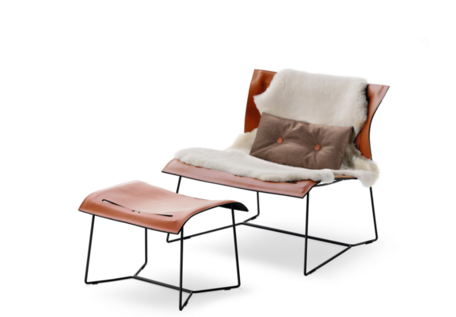 An elegant armchair in a minimalist design made with minimal materials: saddle leather and steel frame. With its freely sprung back, the chair offers incredible comfort. For retreats in hospitality areas or private settings.