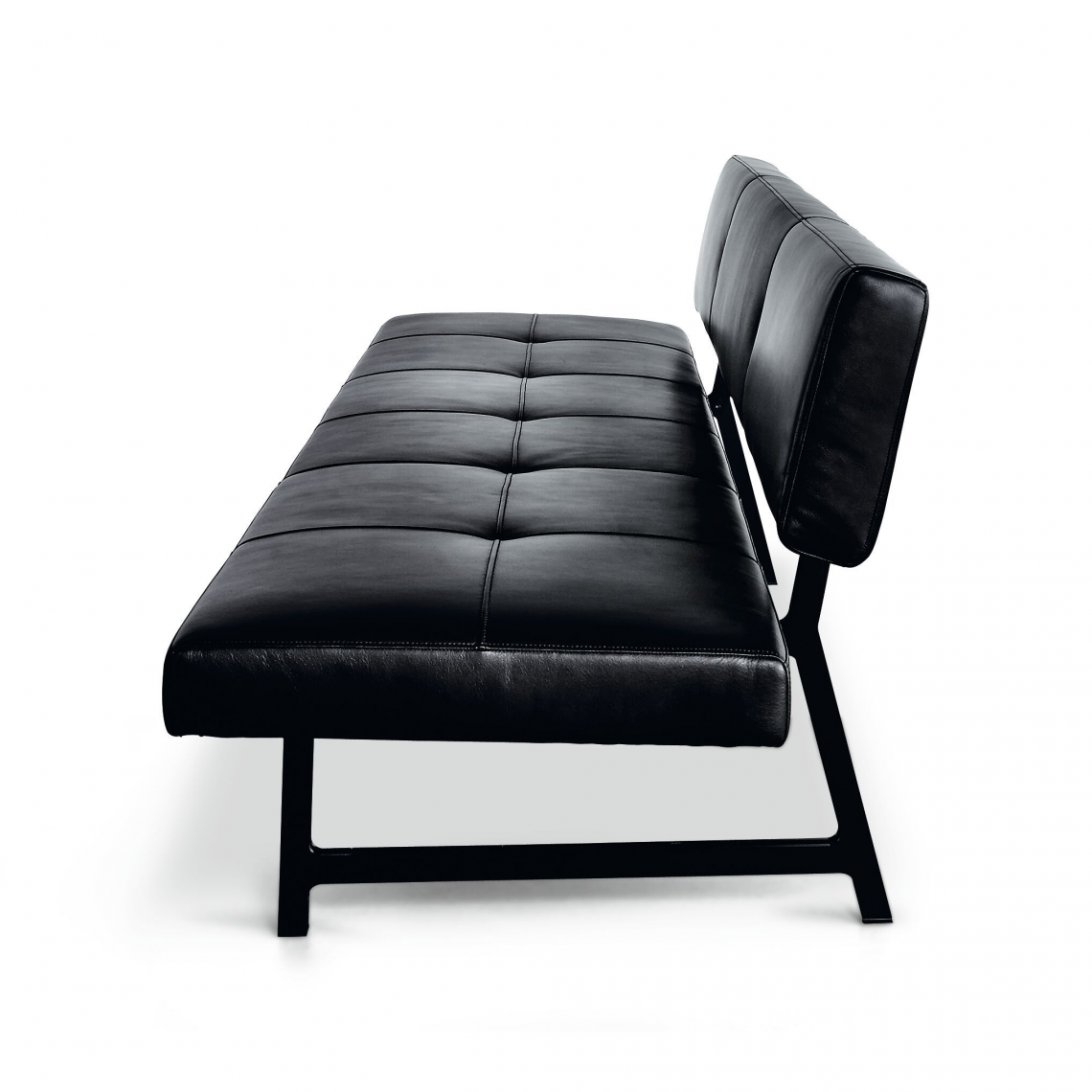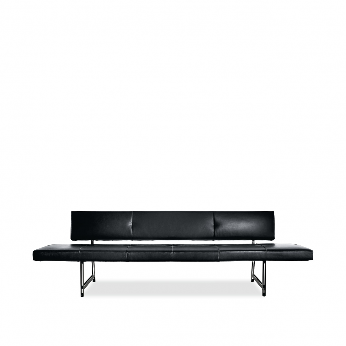 A tribute to the classic English club armchair: minimal form, maximum comfort. Finely stitched piping and gathering divide the surface; the feet are minimalist, delicate, and stable. Hundreds of pocket springs ensure sophisticated sitting in lobbies, museums, galleries, and shops. Available with or without a backrest.