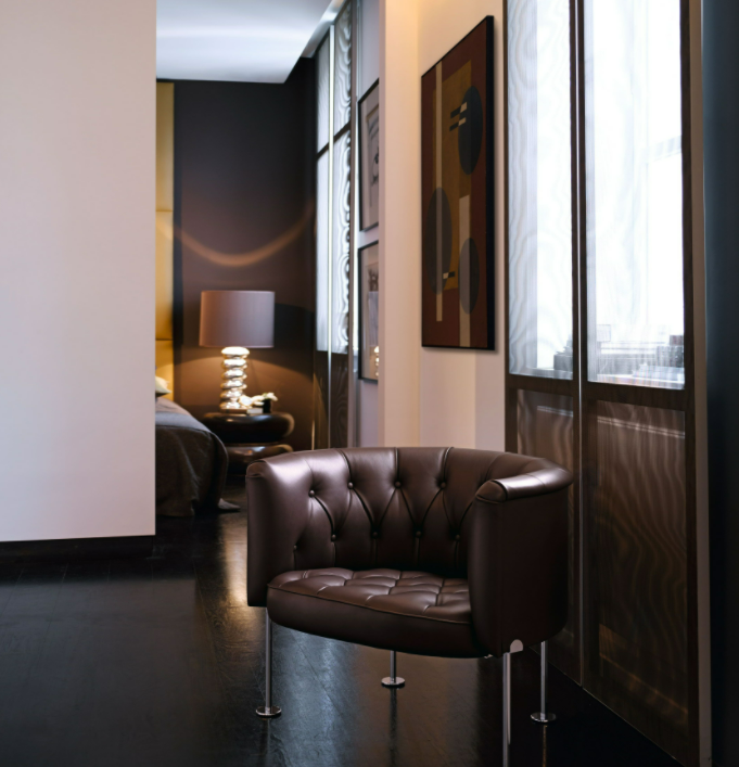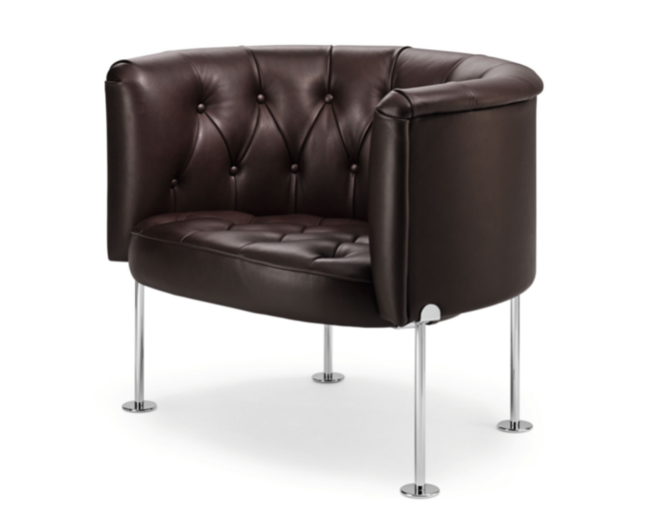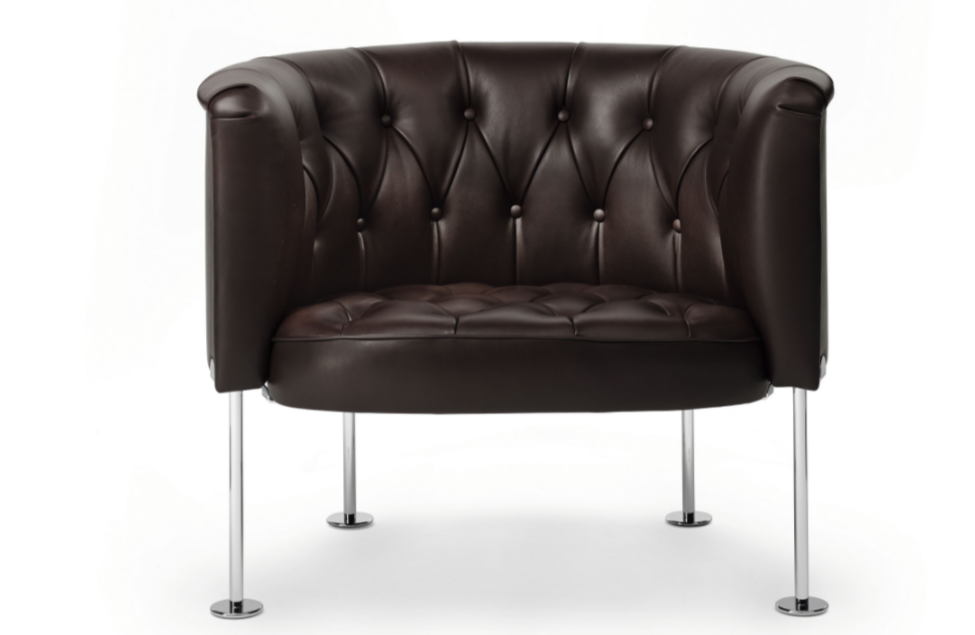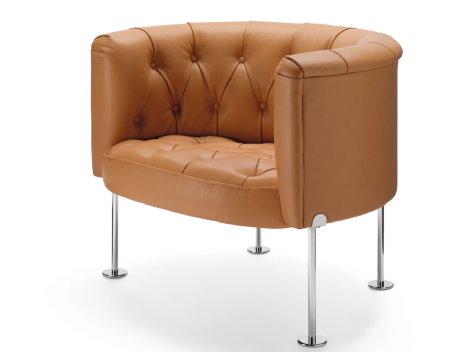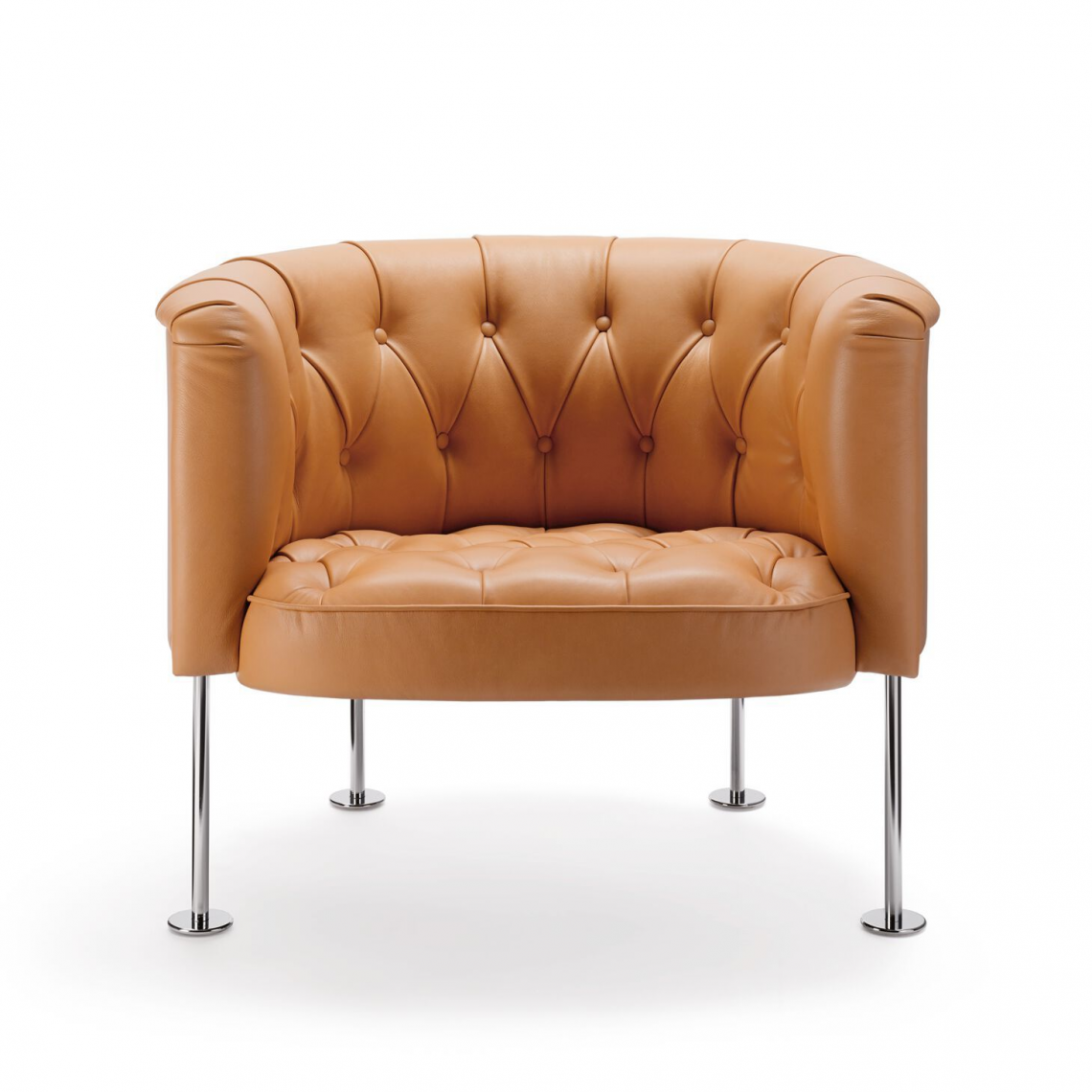 As with a piece of Chesterfield furniture, the characteristic diamond pattern gives structure to the seat and back. This is achieved by the traditional button upholstery technique. The delicate feet are an homage to the Bauhaus. As a sofa and an armchair, this is a statement piece in lobbies and lounges.