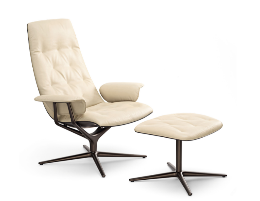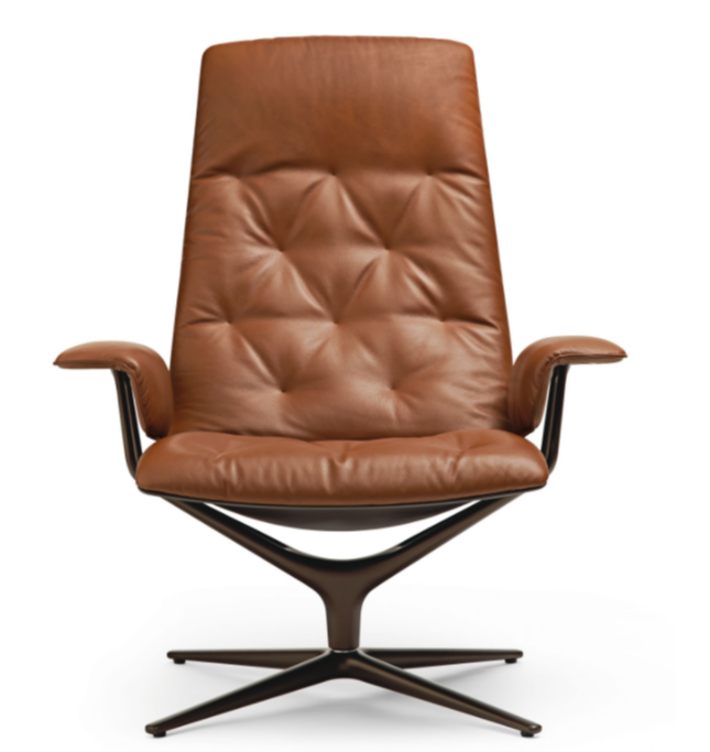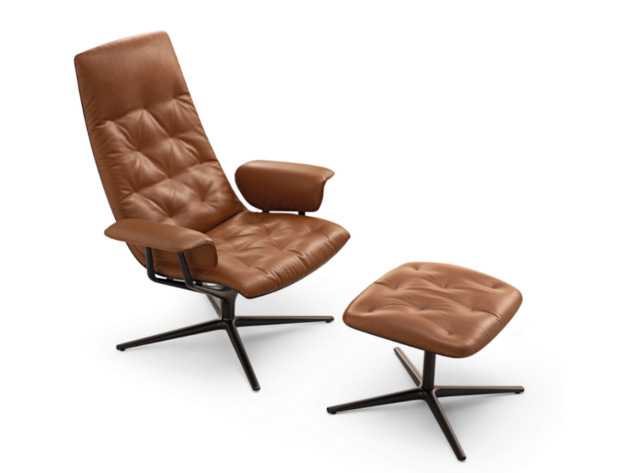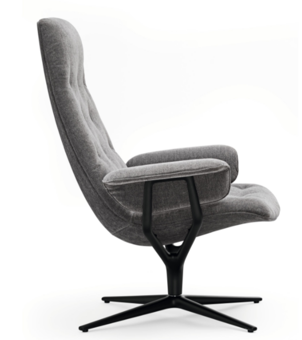 A modern lounge chair with a softly upholstered inner shell, elegant indentations, and pleasantly soft armrests. Whether solo or paired with a sofa, for cocktails, for work, or as a place of private retreat – this is an armchair in which to linger and relax. Also available: the matching Healey Soft Stool.