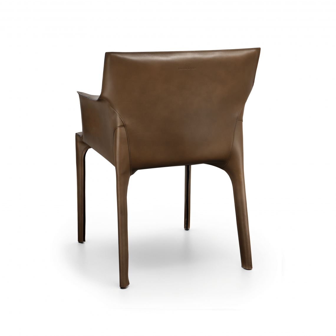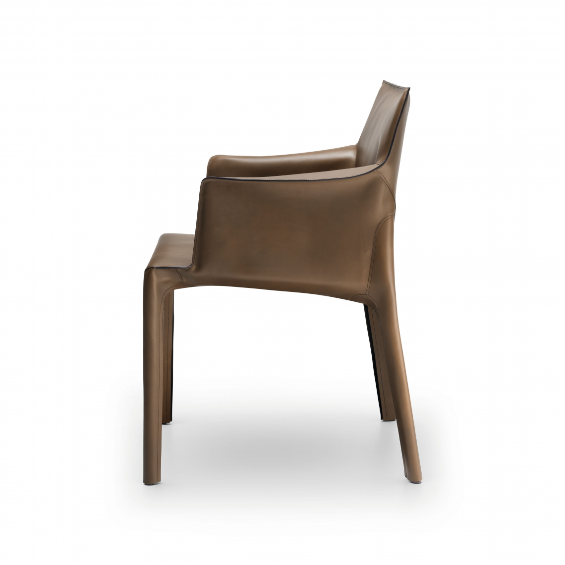 Precise craftsmanship, classically austere in form, and at the same time extraordinarily comfortable. Continuous leather envelops the frame. Flowing lines, painstakingly polished edges and meticulous seams give the shape its contours. Taut belts in the seat account for the outstanding seating comfort.