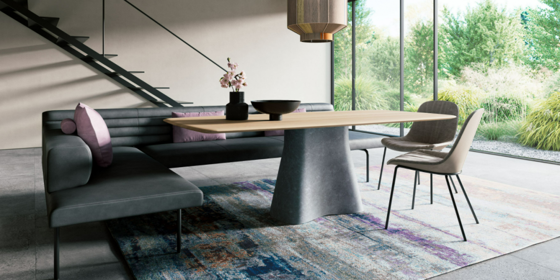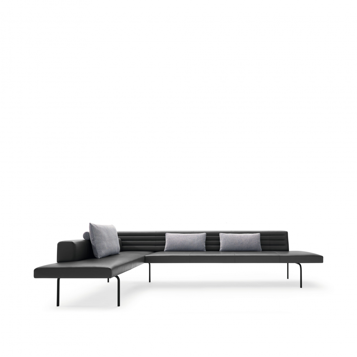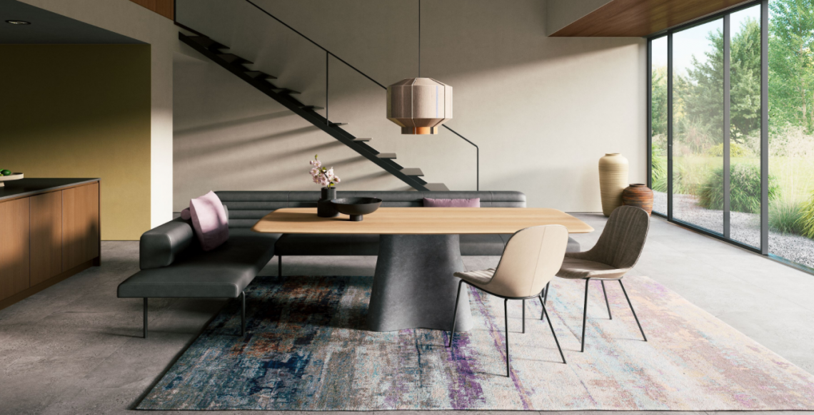 A new interpretation of the classic corner bench – Ison. Light, minimal, complex. The upholstered bench embraces the principle of modernity: less is more. It can be freestanding and radiates lightness. As a corner bench, sofa bench, bench for dining – for working and living.