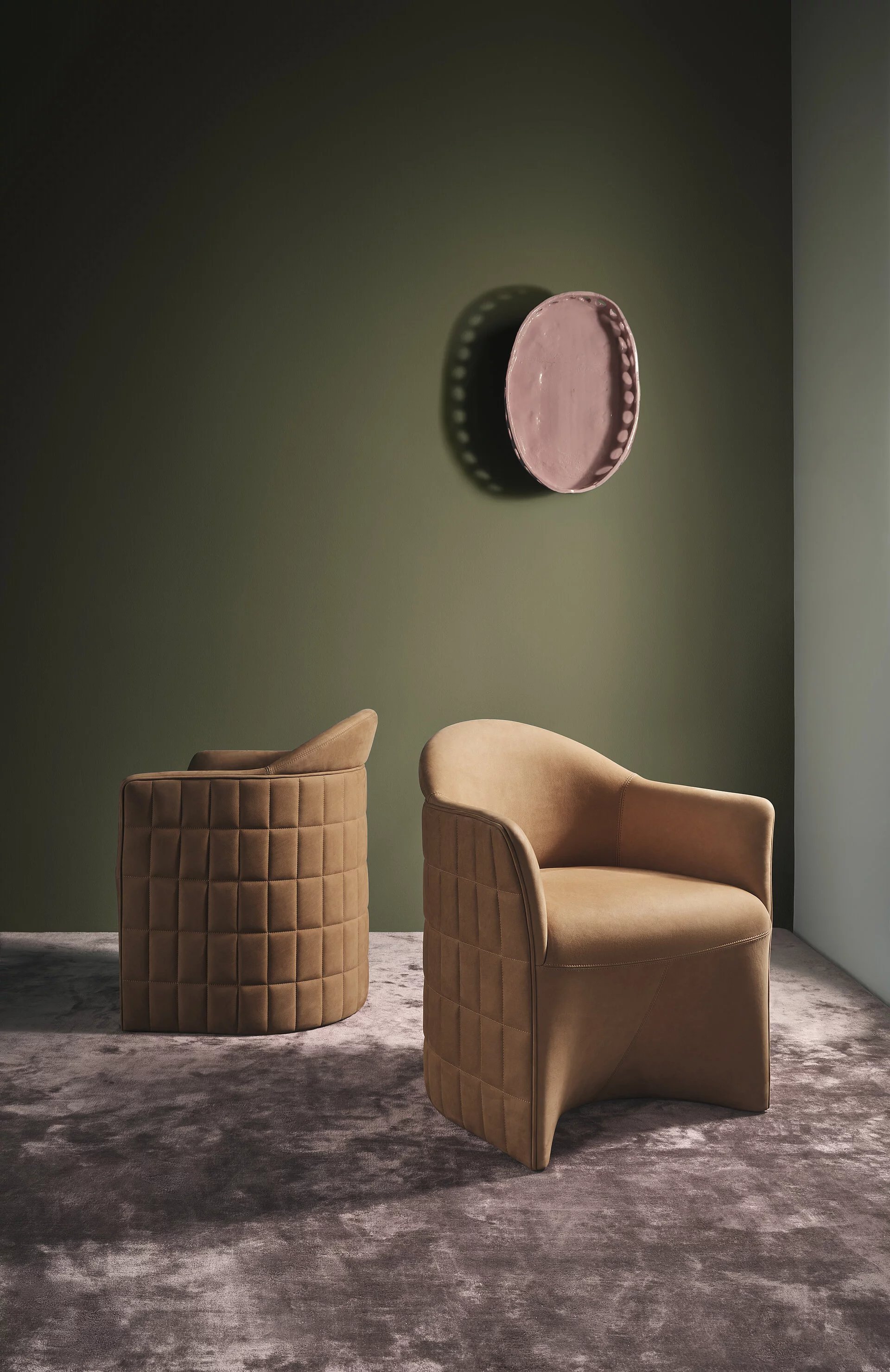 Der klassische Club Sessel kleidet sich gerne in kapitonierte oder gesteppte Bezüge. Für JOSEPH hat Philippe Nigro einen Dialog zwischen diesem traditionellen Merkmal und einer einladenden, planen Fl?che gesucht: Die softe, glatt gepolsterte Sitz- und Lehnfl?che wird schützend von einer gesteppt gepolsterten Formschale umfasst, die zugleich die Armteile bildet.