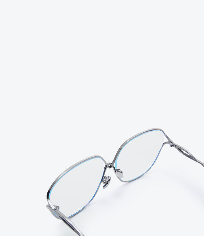 INFINI Eyewear - cast hand-polished stainless-steel frame with tinted lens and bespoke pouch.