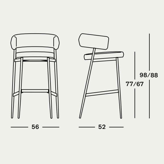 凳子。石墨黑或啞光黑色漆面鋼架機構(gòu)。坐墊填充漸變聚氨酯,靠背填充自熄性聚氨酯泡沫??刹鹦恫剂匣蚱じ镒o套。覆面擱腳采用緞面不銹鋼制成。