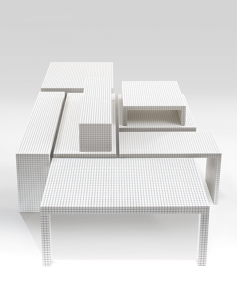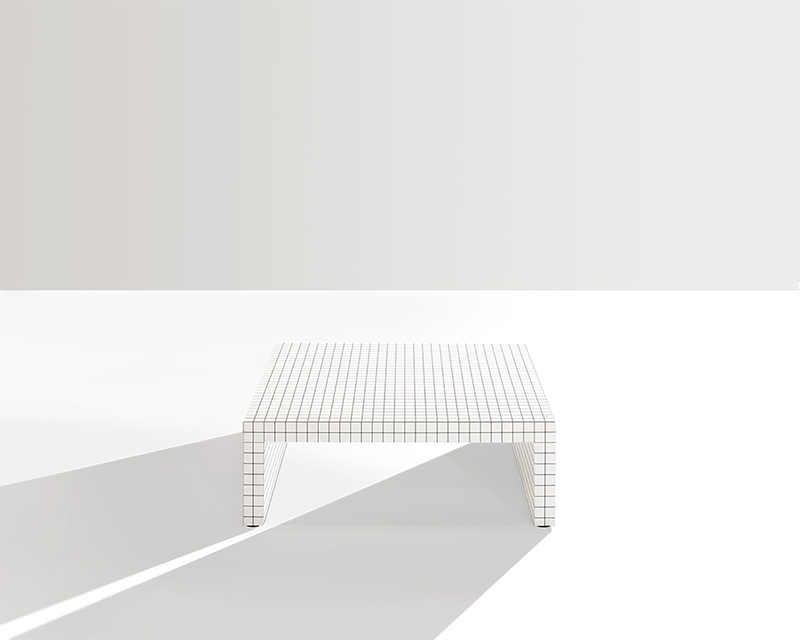 漆面層壓木結(jié)構(gòu),白色設(shè)計,點(diǎn)綴軸距為 3 厘米的方格數(shù)碼印紋。