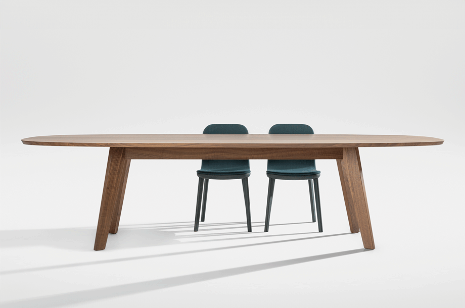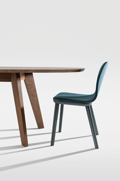 AEON celebrates the interplay between volume and surface, masterfully blending the flexibility of a moulded wood shell with the stability of a solid wood frame. This fusion not only creates a harmonious design but also achieves an optimal balance between form and function: tactile precision meets human-centric design. The solid wood construction supports the curved seat shell with remarkable lightness, enhancing a high level of comfort and freedom of movement for every user.