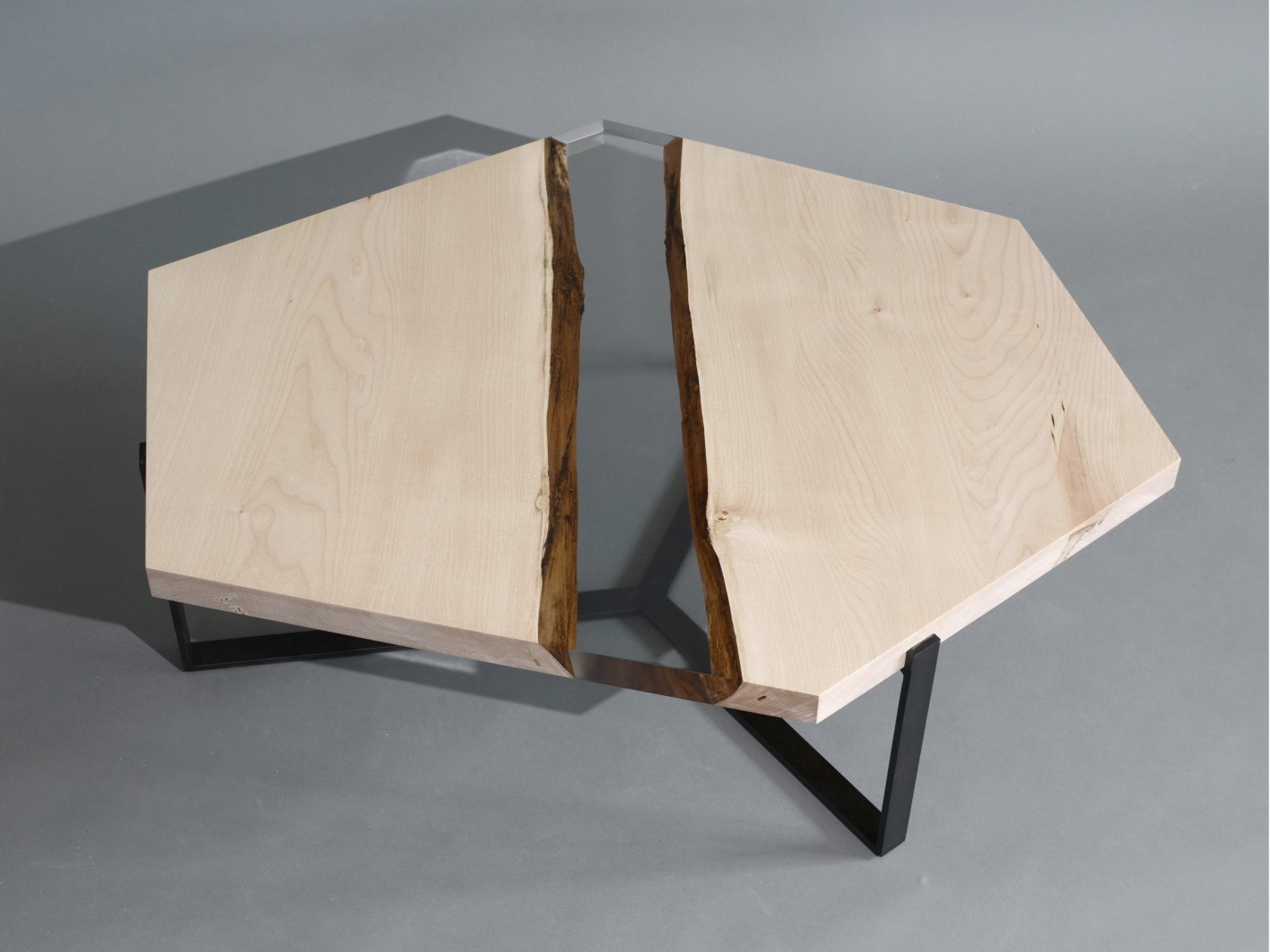 The Crystal Wood Trio is inspired by the process of crystal formation and growth that extends in many directions and heights, with the aim to connect the organic shapes of wood with the rigid geometries of the minerals.