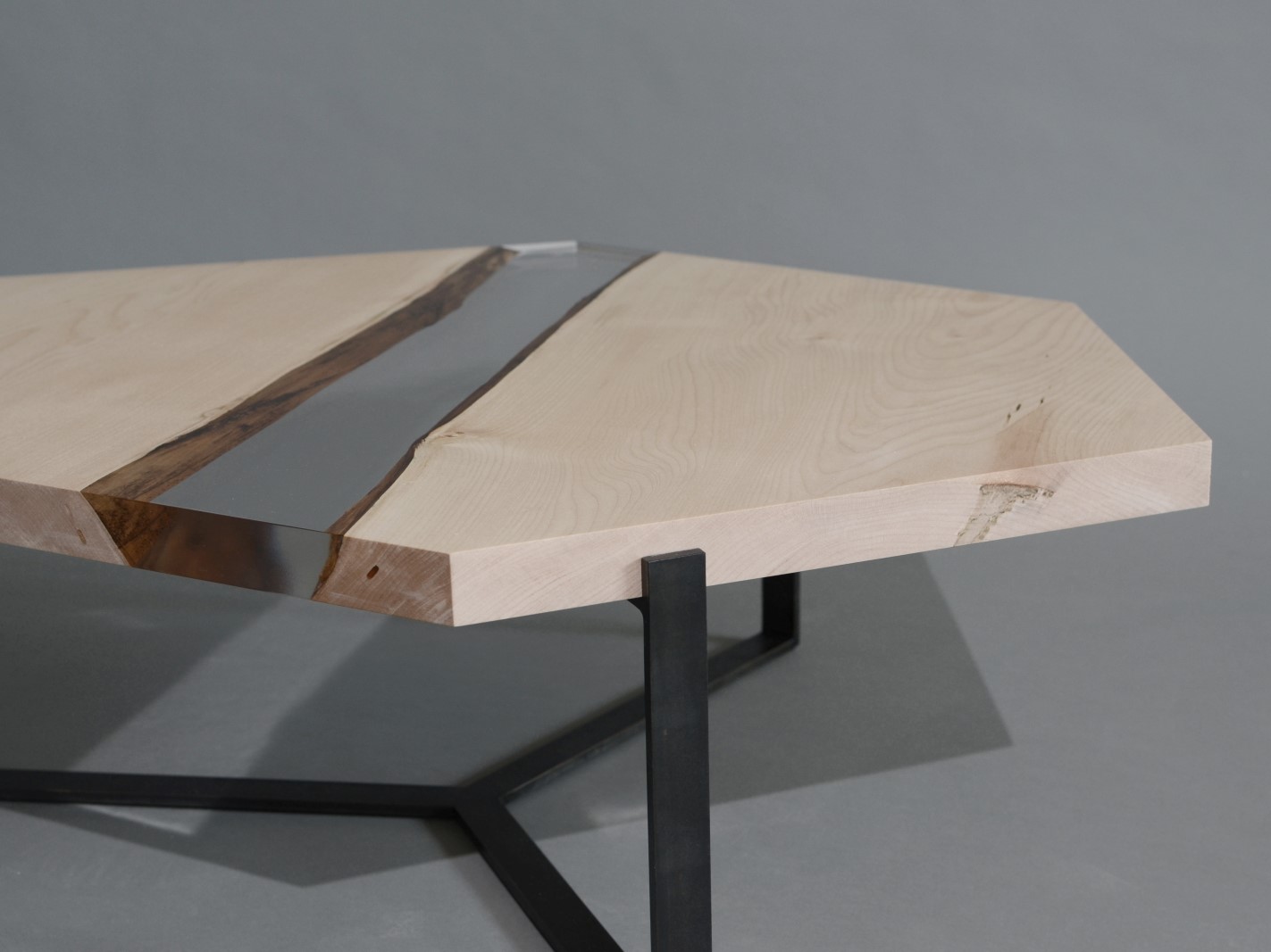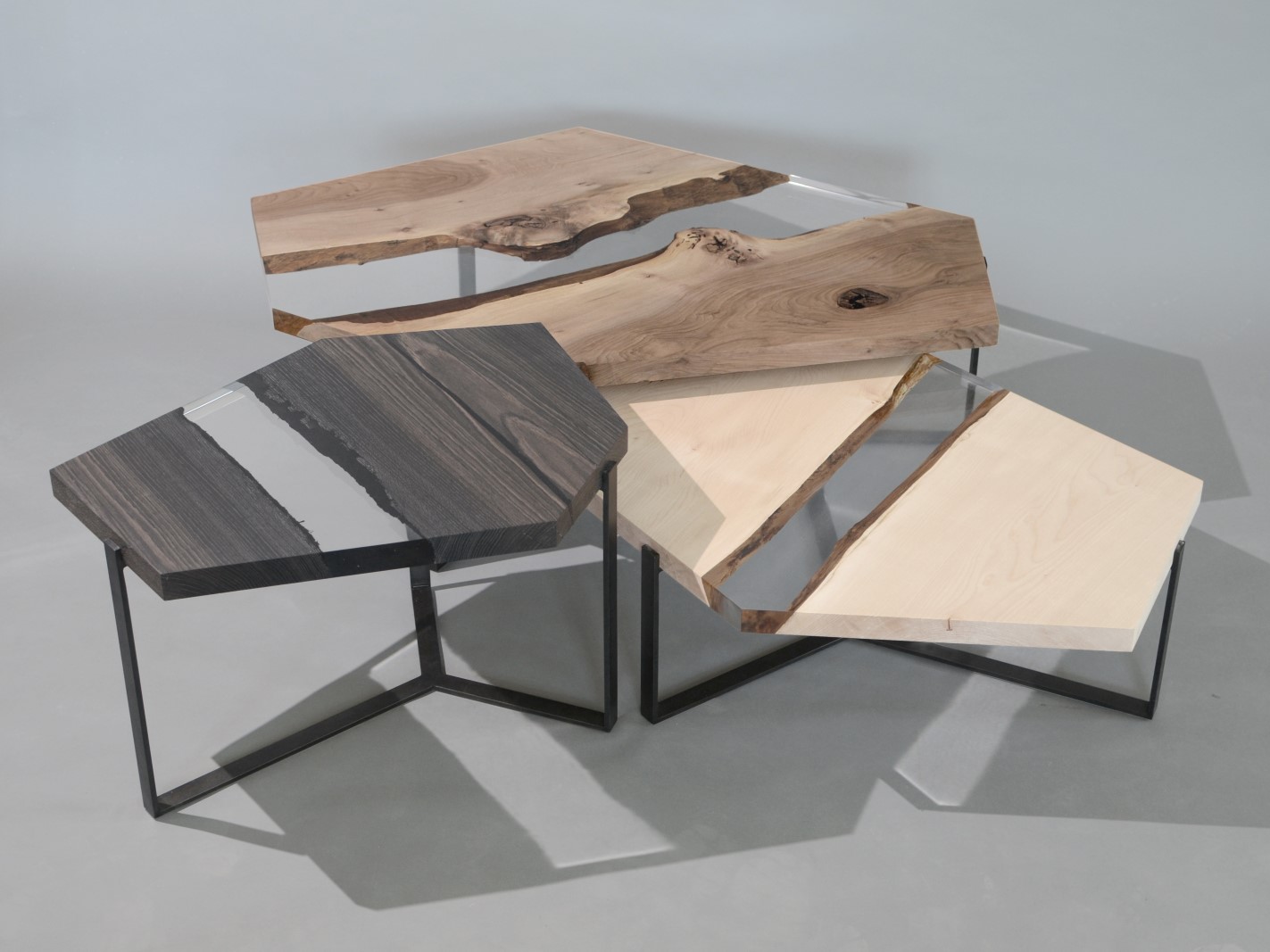 A special crystalline resin fill the gaps between the wood live edges completing the prisms and preserving their story.