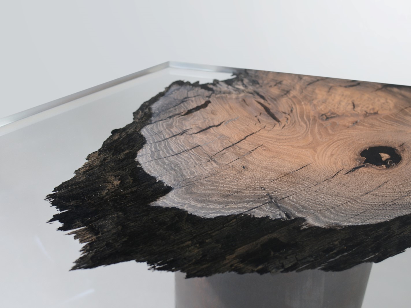 Currents bind the minerals and iron in the water with tannins in the wood, naturally hardening and colouring the wood in the process. This is clearly visible on the chromatics scale of the woodgrain – changing from golden to black – with always unique shades.