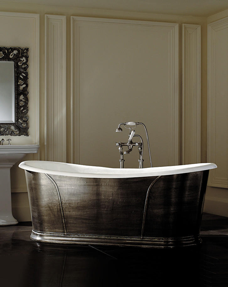 An impressive cast iron bathtub with a strong character and a clear taste. Its exclusive design is shaped by millenary suggestions that refer to medieval origins of the Anglo-Saxon style. It is covered with a thin coated lead foil.