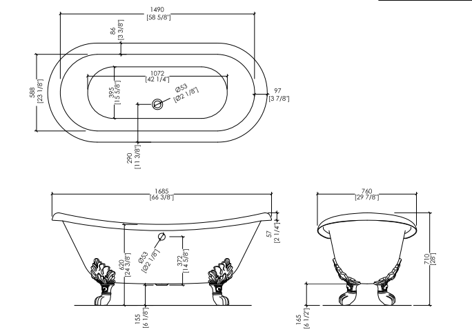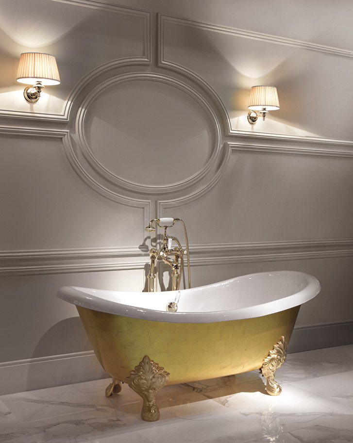 Our cast iron bathtubs are produced following traditional hand-made systems. Their internal and external finishes are both proof of the way in which they are produced. The external painting of our bathtubs is primed for the final enameling and cannot be considered as a final finish.