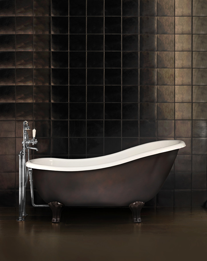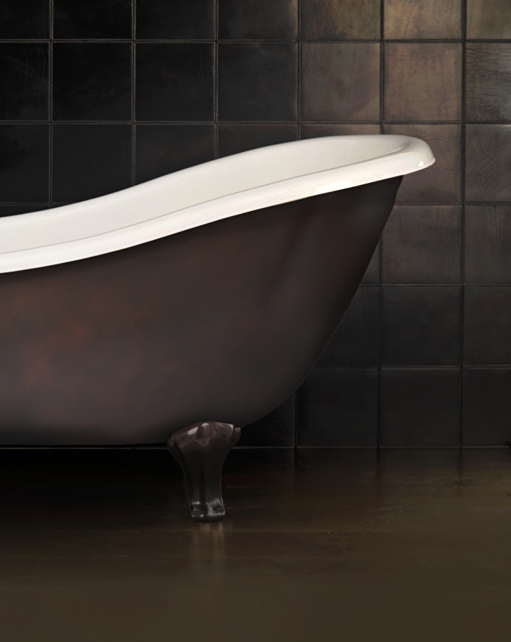 With this precious, spacious and comfortable cast iron bathtub, The ritual of bathing brightens with the warm reflections of copper that enhance the pure lines and the sinuous volumes of a refined retro-inspired design.