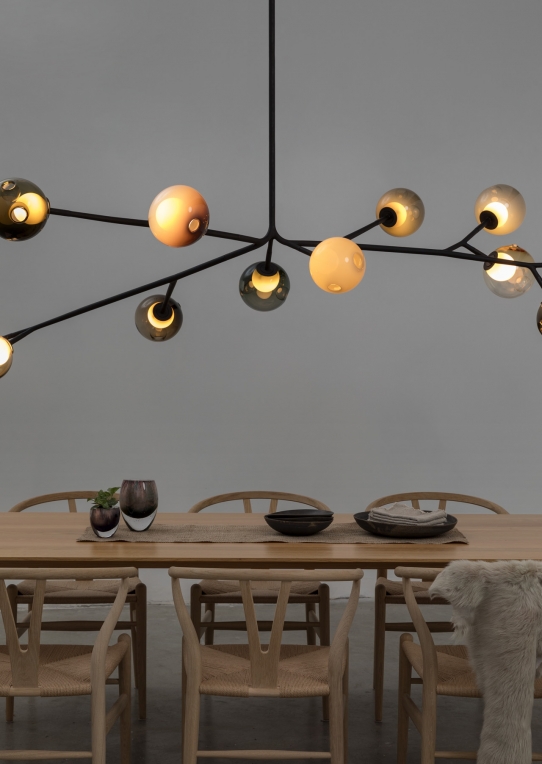 The 28 random is suspended using coaxial cable and composed in ambient groupings.