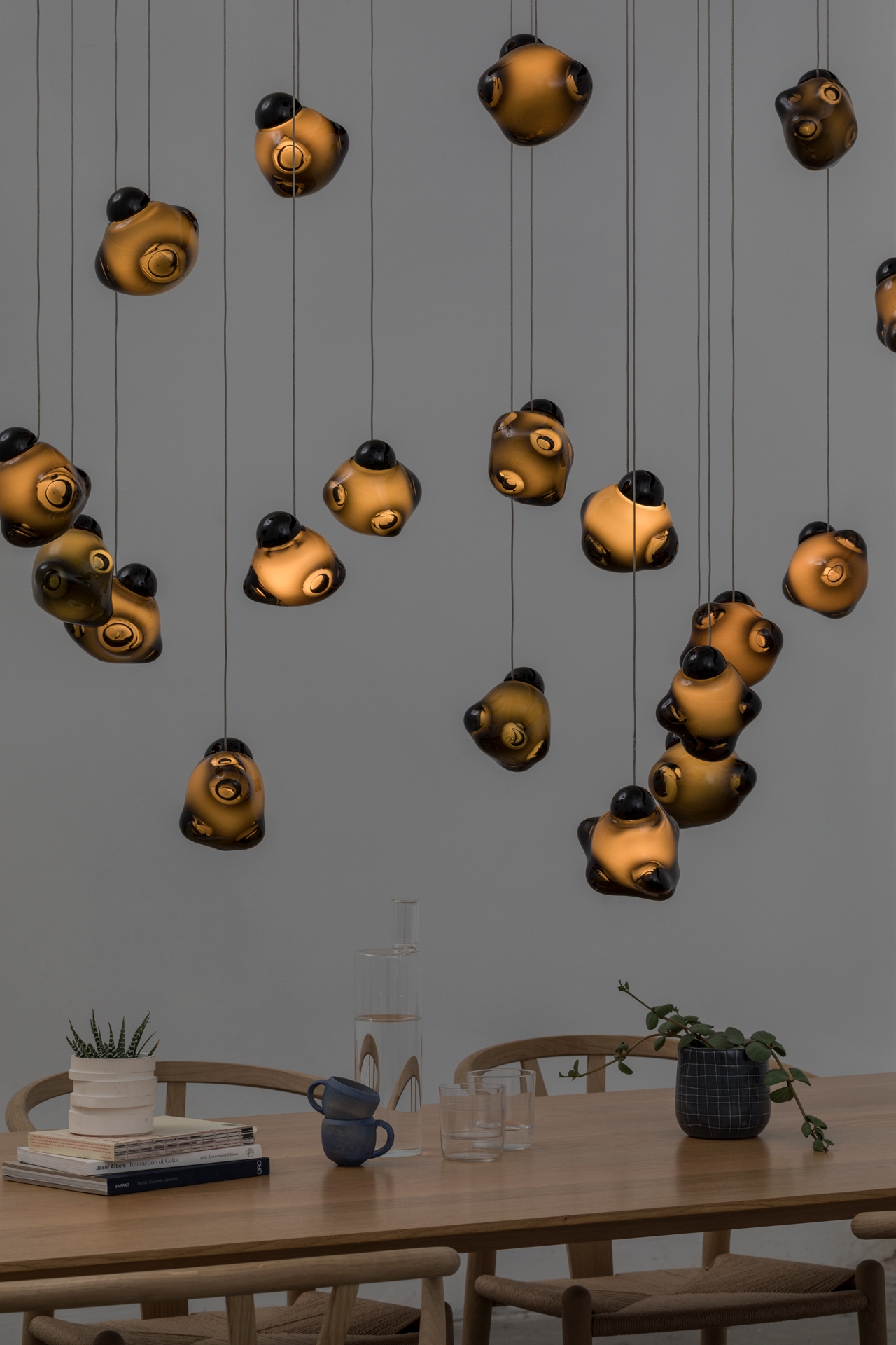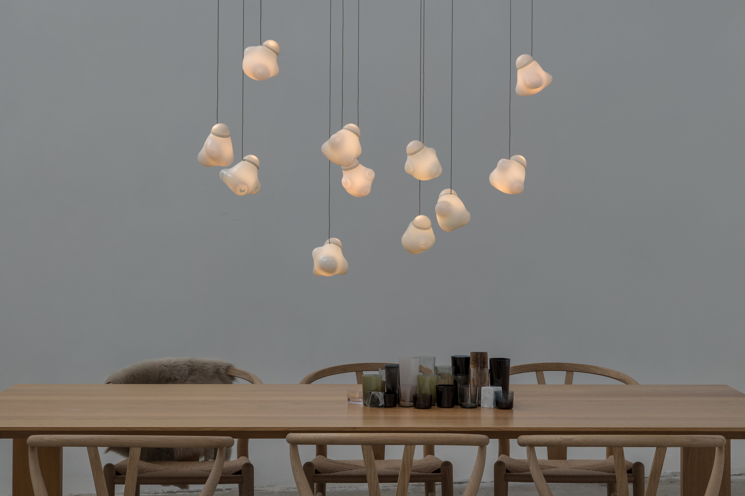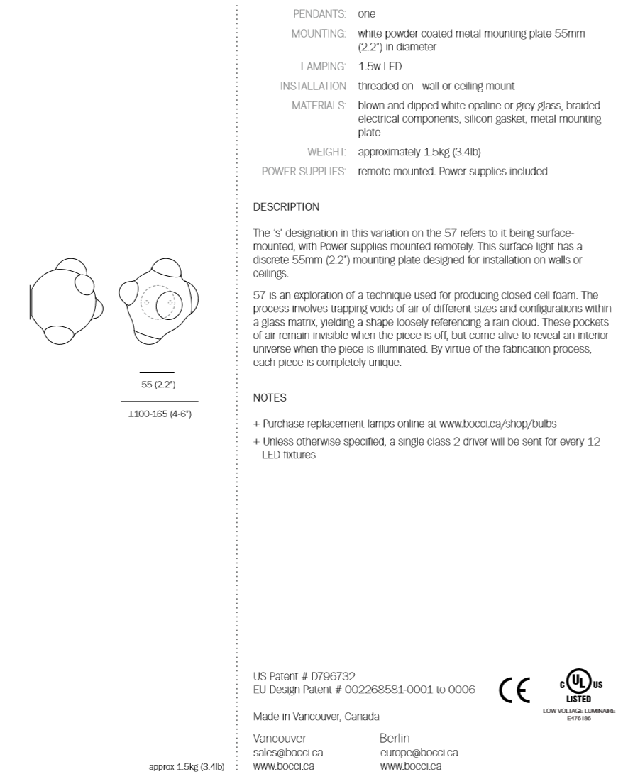 57 random is suspended using coaxial cable and composed in hexagonal clusters in numerous configurations.