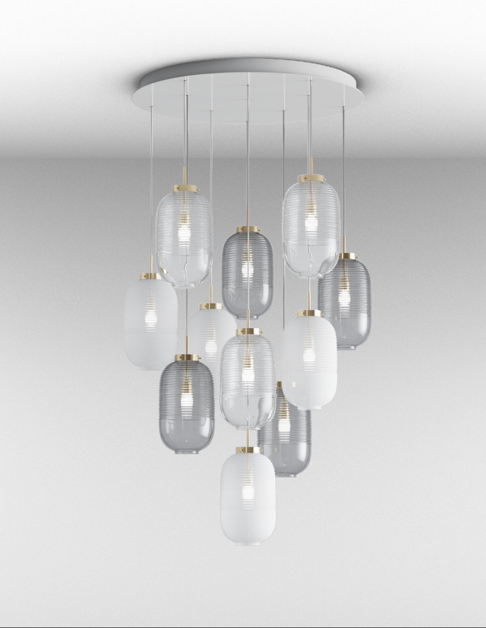 The ancient shape of the lantern, transformed by BOMMA and recast into glass, maintains its age-old symbolism of a messenger. The essential shape of the crystal Chinese lantern is replicated by hand-blowing into a wooden form. The resulting precise craft, despite its minimalist appearance, accentuates our prime devotion to traditional glassmaking principles in both top quality and perfect details. In their basic clear version, these lighting objects can be easily combined, forming random or even geometric groups. In smoke or white colors, Lantern adds soft ambient light to any interior.