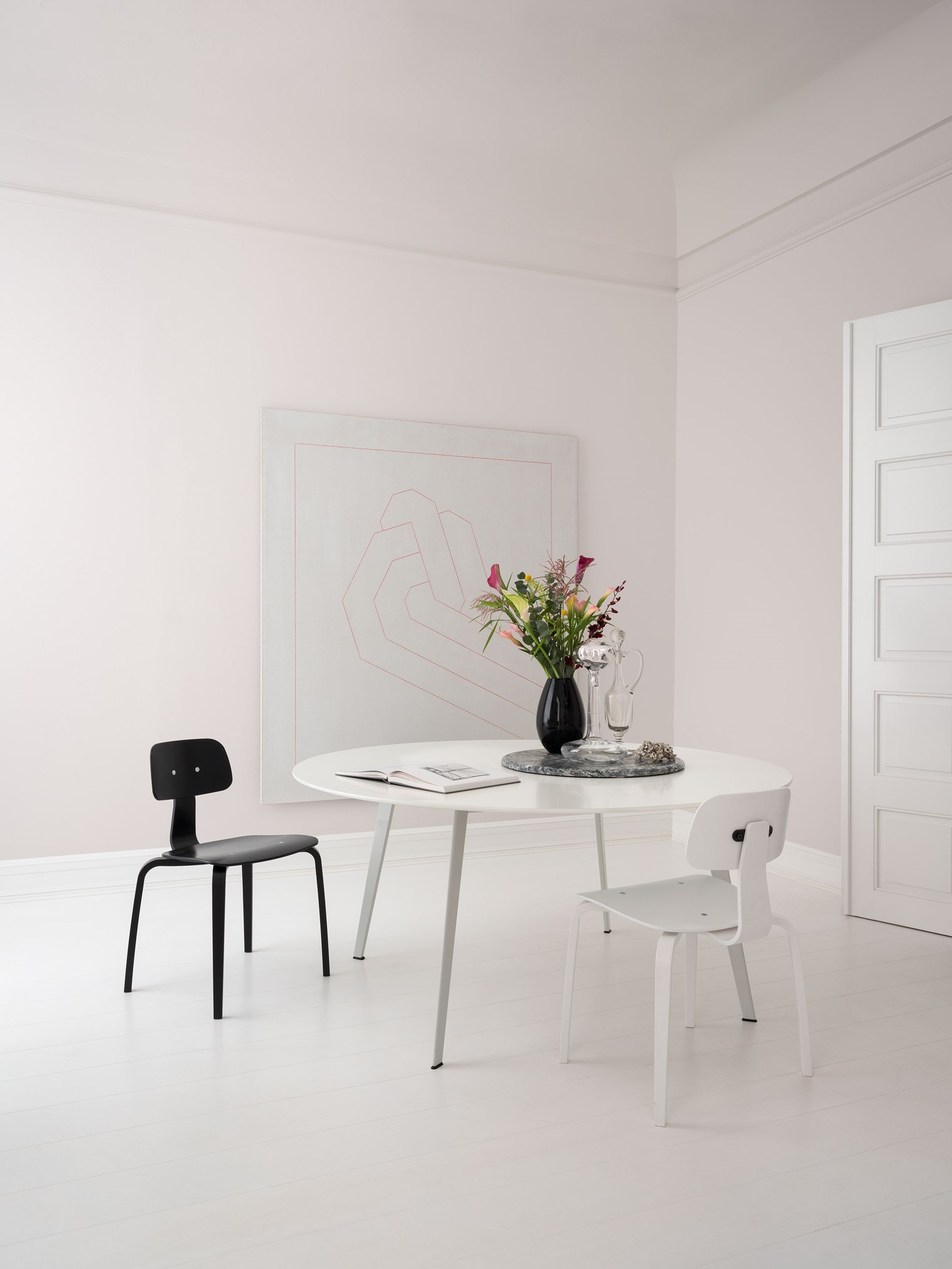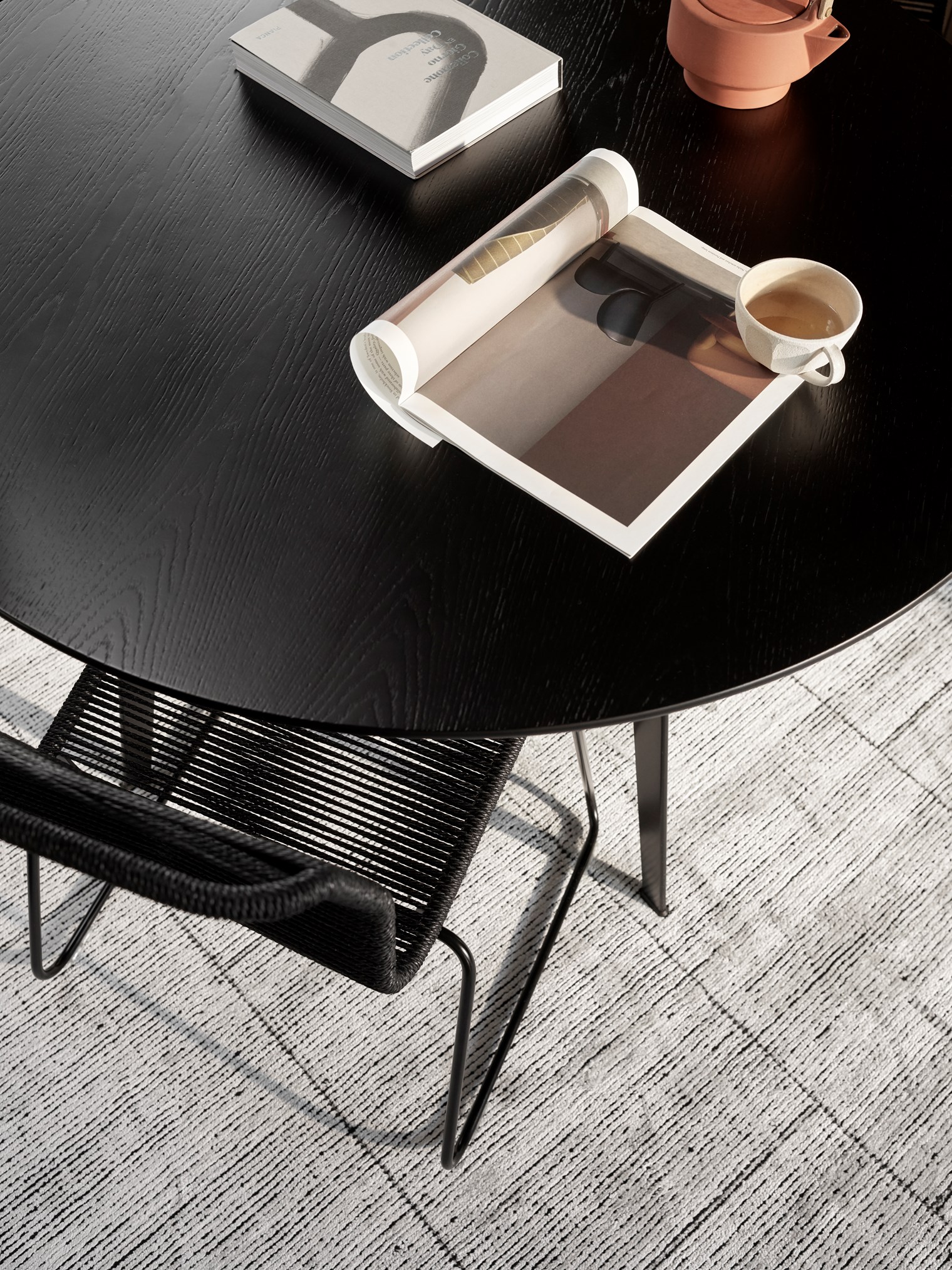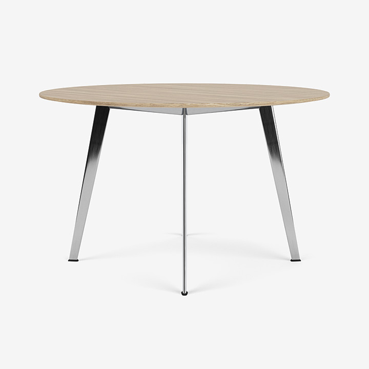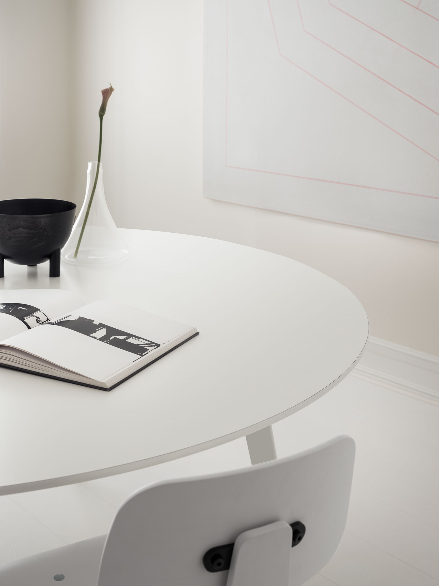 這款現(xiàn)代桌子具有無限的可能性,可以為私人和專業(yè)用途創(chuàng)造時尚簡約的室內(nèi)設(shè)計。圓桌纖薄輕巧的設(shè)計使其成為餐廳或?qū)I(yè)會議區(qū)的理想選擇。桌子直徑120厘米,高74厘米。由于桌子的設(shè)計注重舒適性和人體工程學(xué),因此框架隱藏在桌面下方,桌腿略微向外傾斜,提供了最大的腿部空間。桌面有八種不同的材料可供選擇:雪絲層壓板、黑色和新北歐顏色的油氈、白橡木、燒橡木和黑橡木以及實心道格拉斯橡木和實心橡木貼面。