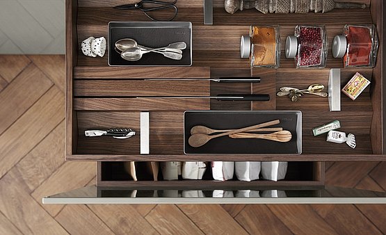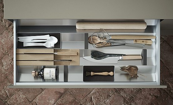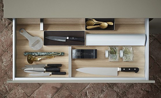 A centerpoint of communicationThe floor-standing island looks sculptural in the room and offers its user an abundance of storage space.