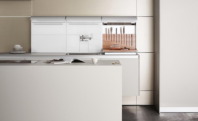 Foot-supported elements can accommodate any weight with ease. The island shares b3’s aesthetic sense of lightness.