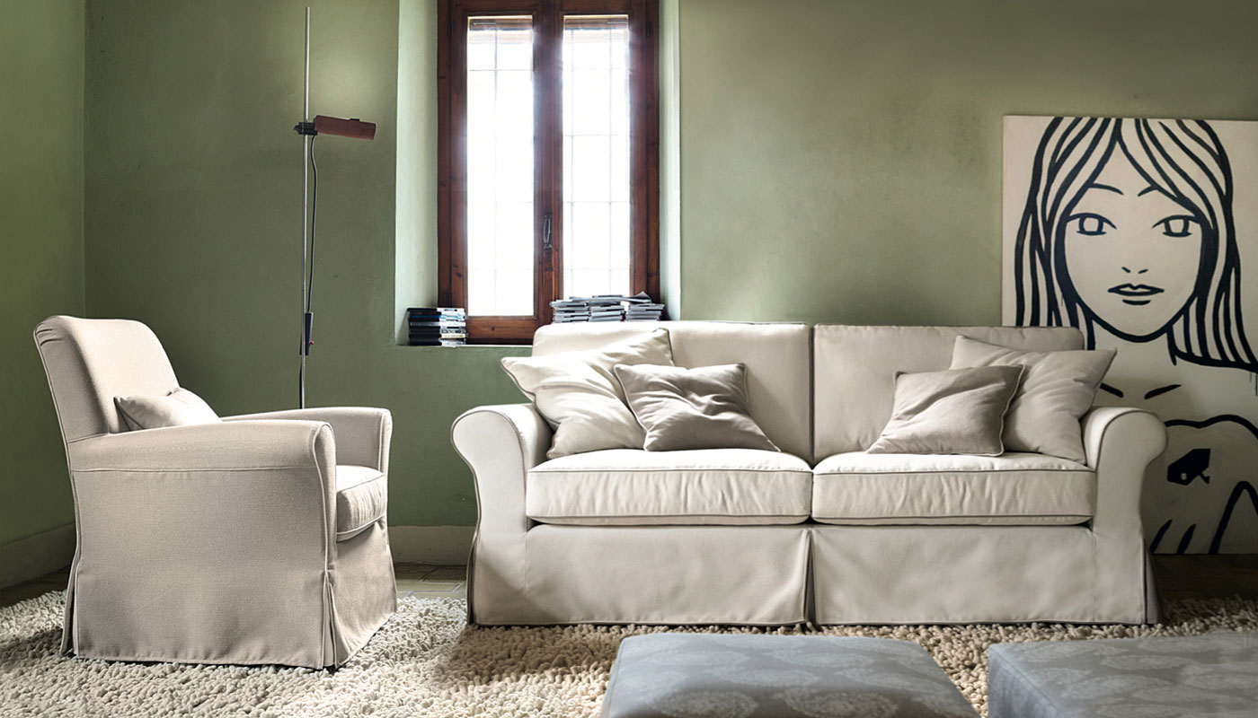 We love the green of nature, the peace and the quiet of coutryside. We love things carefully made, with natural materials and worked by skilled hands. We love things that last for a long time. Mykonos sofa is elegant thanks to its smooth lines and comfortable for its wide and soft cushions. It offers the best relax. The coverings can be chosen depending on the fantasy and the personal taste. It can dress every kind of weave, from plain colors to extreme floral pattern, and it can be inserted in the more particular environments.