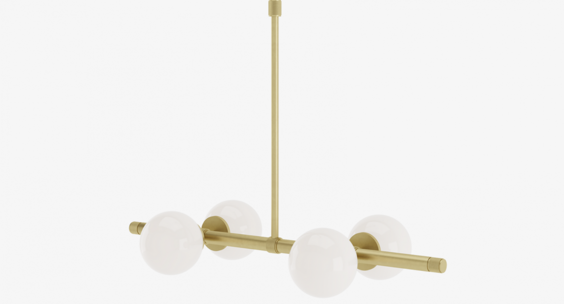 Suited to a multitude of spaces, the beautifully balanced LUND ceiling lamp features four opaline glass globes suspended from a brushed-brass structure, the height of which can be adjusted to best suit your needs