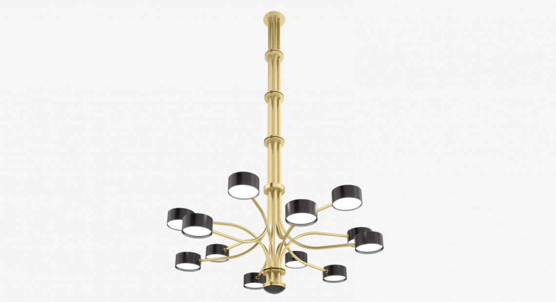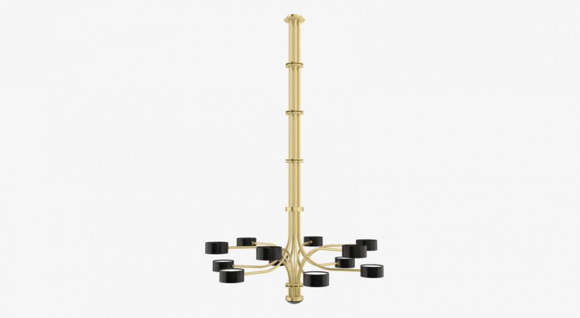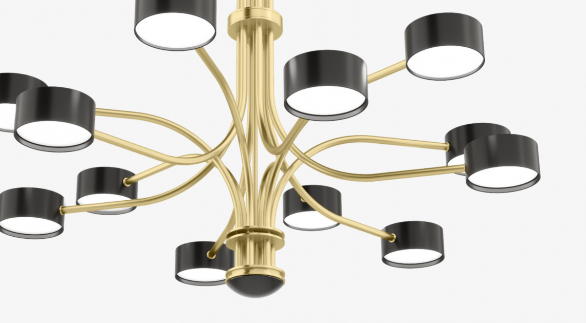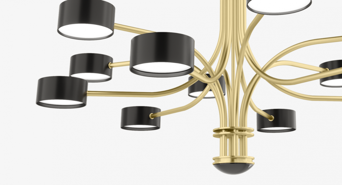 The intricate TAIF Ceiling Lamp’s 12 precisely positioned lights branch out from a central column. Made of glossy lacquer and inlaid with 5mm-thick opaline glass
