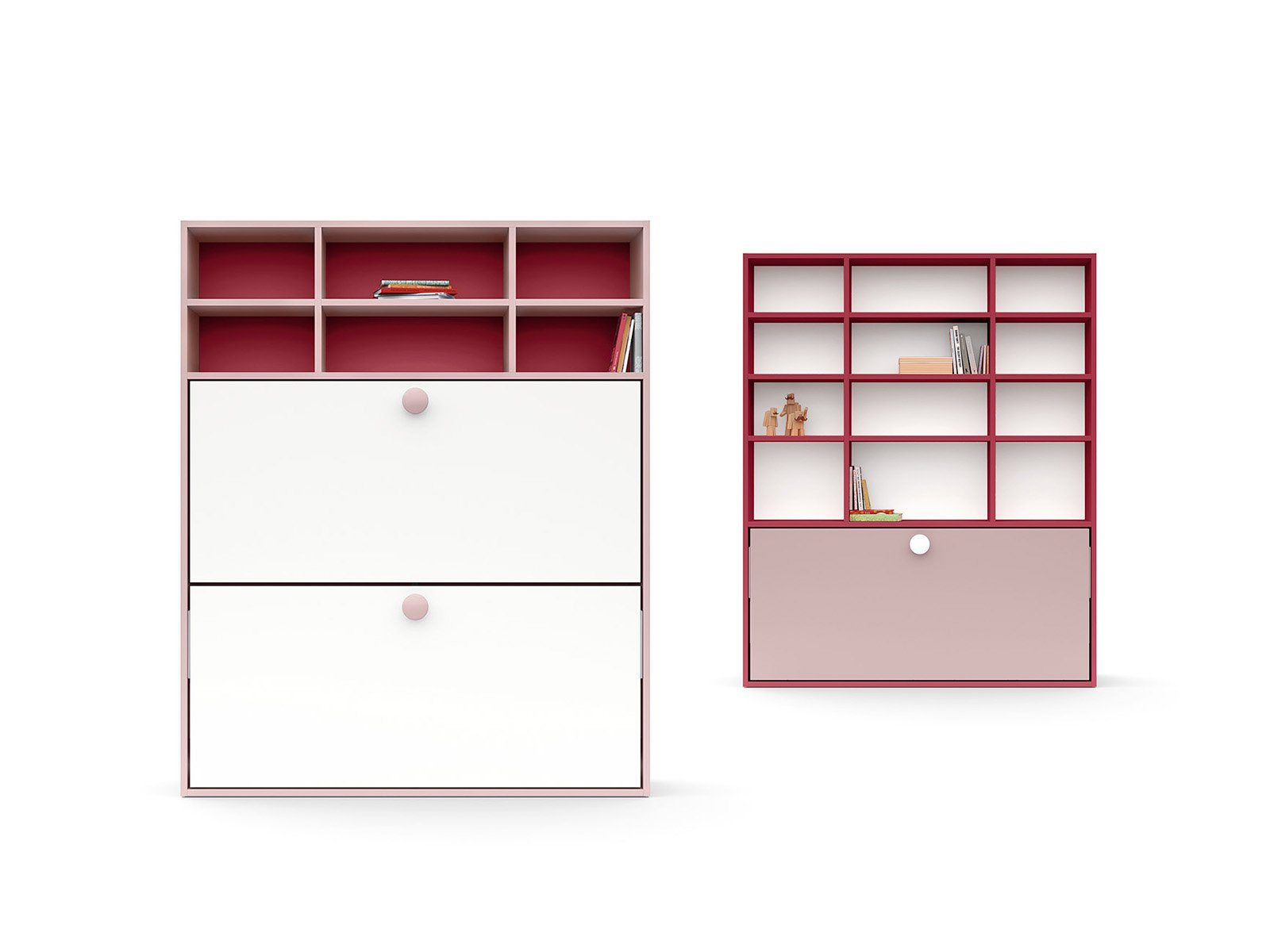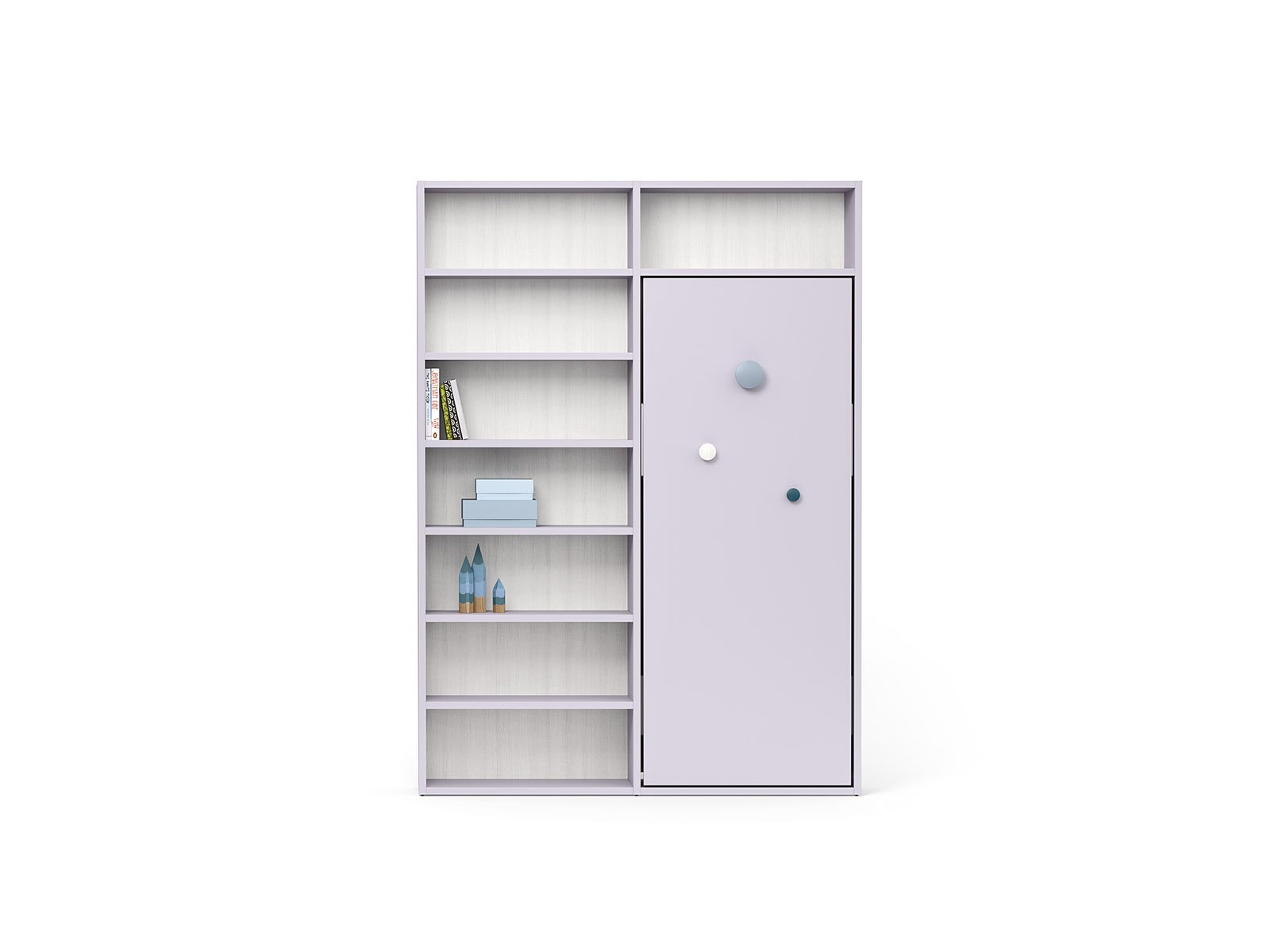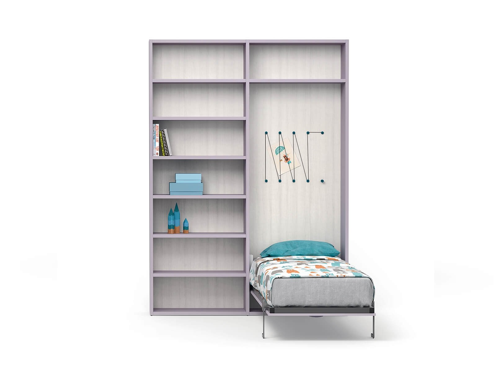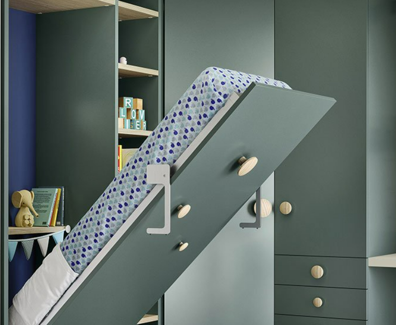 Con i suoi fianchi sagomati più larghi alla base, il ponte Tippy accoglie un letto, uno scrittoio o entrambi. E grazie al meccanismo, lo scrittoio lascia spazio al secondo letto senza dover spostare nulla.