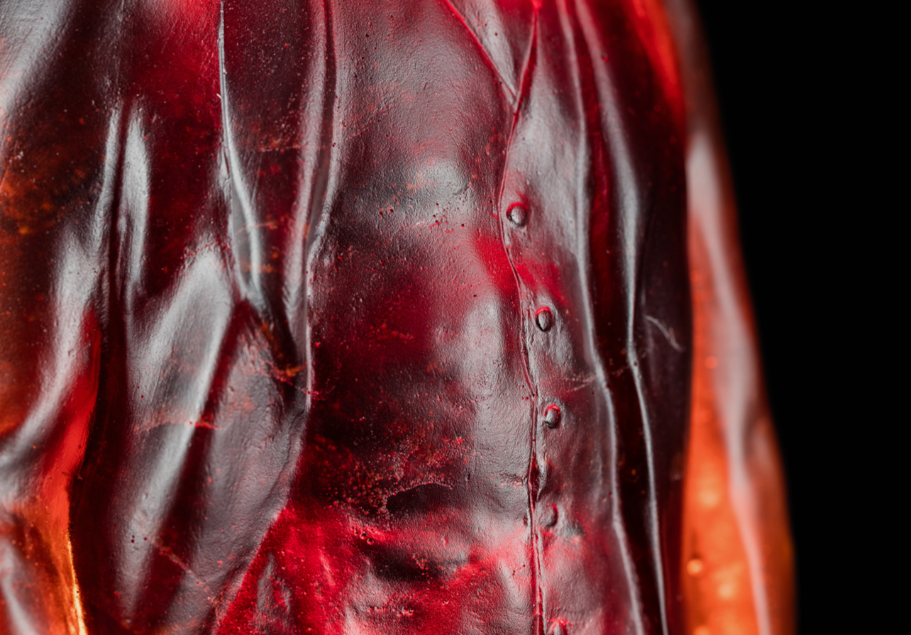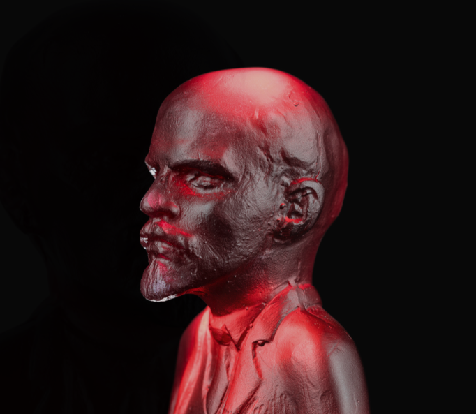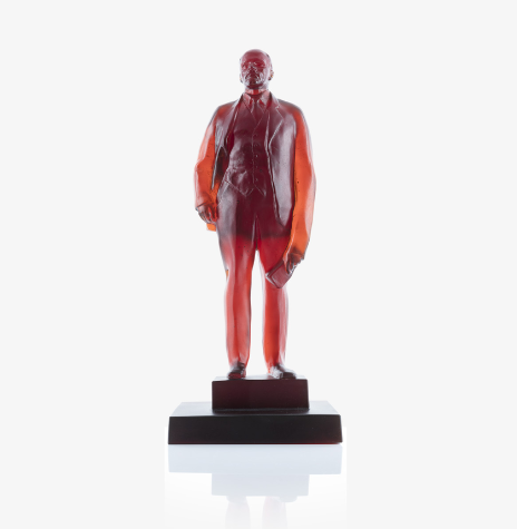 At first glance, glass Lenin is a decent portrait of a person – it looks like the same Lenin we used to know from portraits and statues – but when you look closer, something isn′t quite right. Both his left limbs are bigger. This Lenin suffers from malignant forms of leftism. Made of fused glass, the monster Lenin shines true in his beloved color red.