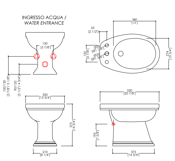Classic lines and 1950s inspiration for a bidet in fine white porcelain with external irrigation and 1 or 3 holes, which combines bon ton taste with functionality in a perfect mixture.