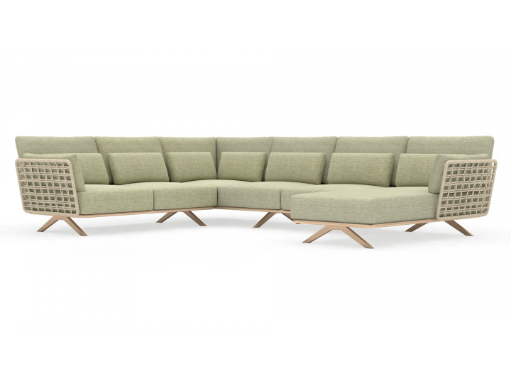 Divano in acciaio inox Aisi 304 ed alluminio verniciato a polveri ed intrecciato in Oval Trendyrope. Linee che valorizzano l'iconico stile italiano, dove le lavorazioni in corda donano un'estetica materica ed artigianale alla morbidezza avvolgente delle sedute, per concepire uno spazio ideale, dedicato al relax e alla socializzazione. Progettato sia per l'arredamento residenziale che contract, outdoor e indoor.