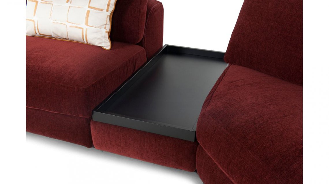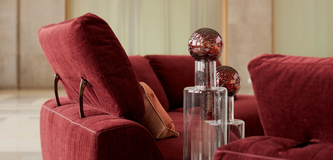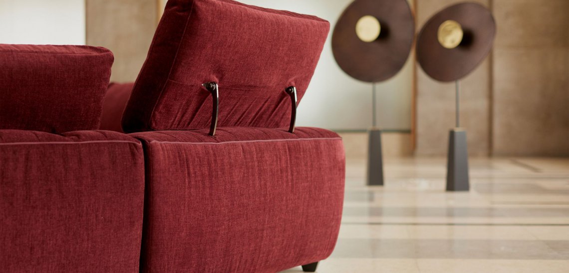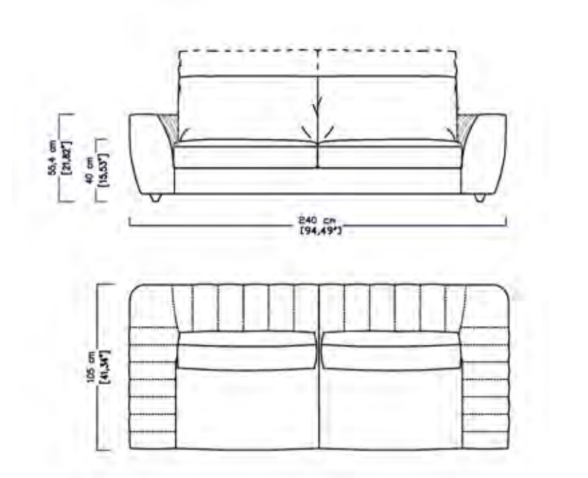 Schienali reclinabili, meccanismo in metallo finitura Cromo Nero. Cuscini di schienale: trapuntino in piume d'oca e anatra su anima di mousse poliuretanica a doppia densità 21-25 kg/m3. Cuscini di seduta mousse poliuretanica a doppia densità 30-40 kg/m3 e fibre. Struttura in abete massiccio, multistrato di pino e agglomerato. Sospensioni con cinghie elastiche incrociate. Piedini in faggio massiccio tinto nero.