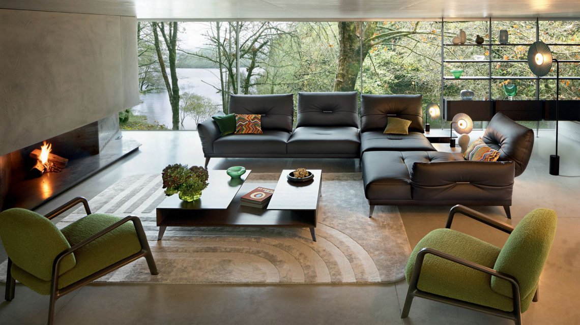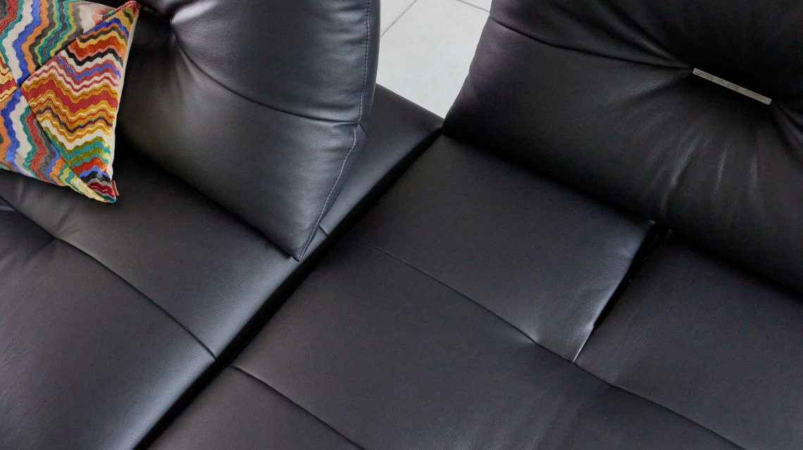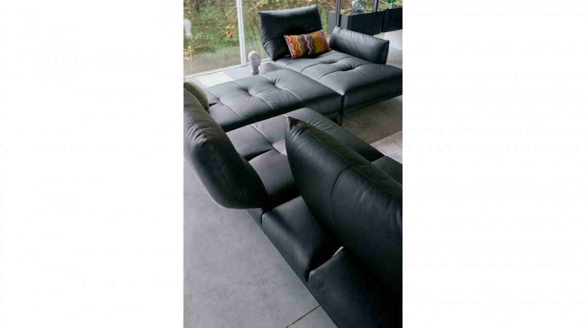 Rivestito in pelle Sweet, pelle vacchetta pieno fiore, pigmentata. Schienali a doppia profondità con meccanismo a bilanciere (disponibile in versione fissa), braccioli mobili. Cuscini seduta imbottiti in mousse poliuretanica 23-35-40 kg/m3 e ovatta. Cuscino bracciolo imbottito in mousse poliuretanica 45kg/m3 e ovatta. Struttura in acciaio, abete massiccio e multistrato di pino. Sospensione a cinghie elastiche. Disponibile in altre misure, divani dritti e pouf.